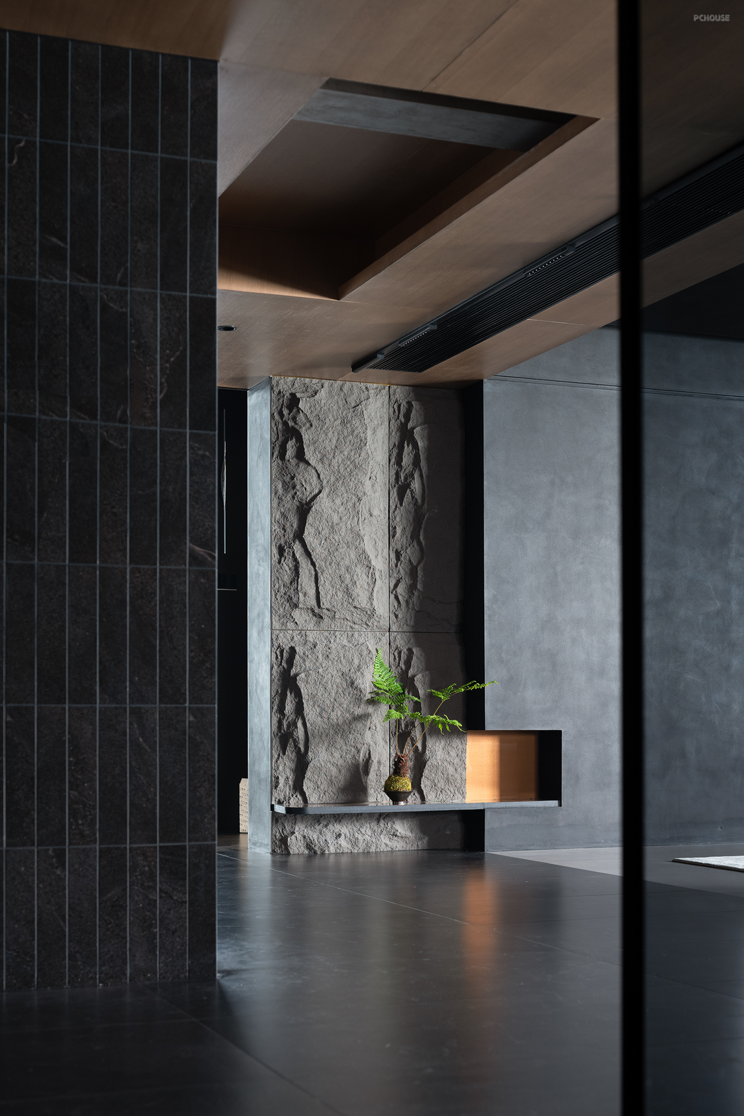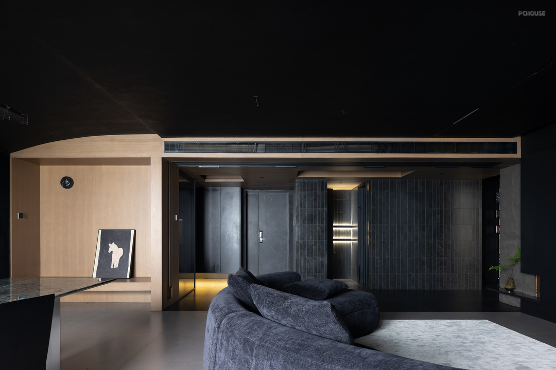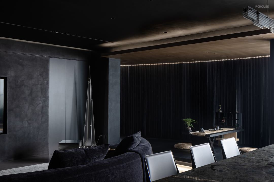 “黑色”在世界各地文化中的词根词源里,都有“燃烧”一义。本案屋主喜欢厚重的调子、幽暗的灯光以及自然的肌理,我们用黑色铺开浓重的第一印象,而沉浸其间,则能看到屋主的个性气氛如何随着材质的肌理纹路漫延生长,细细燃烧。