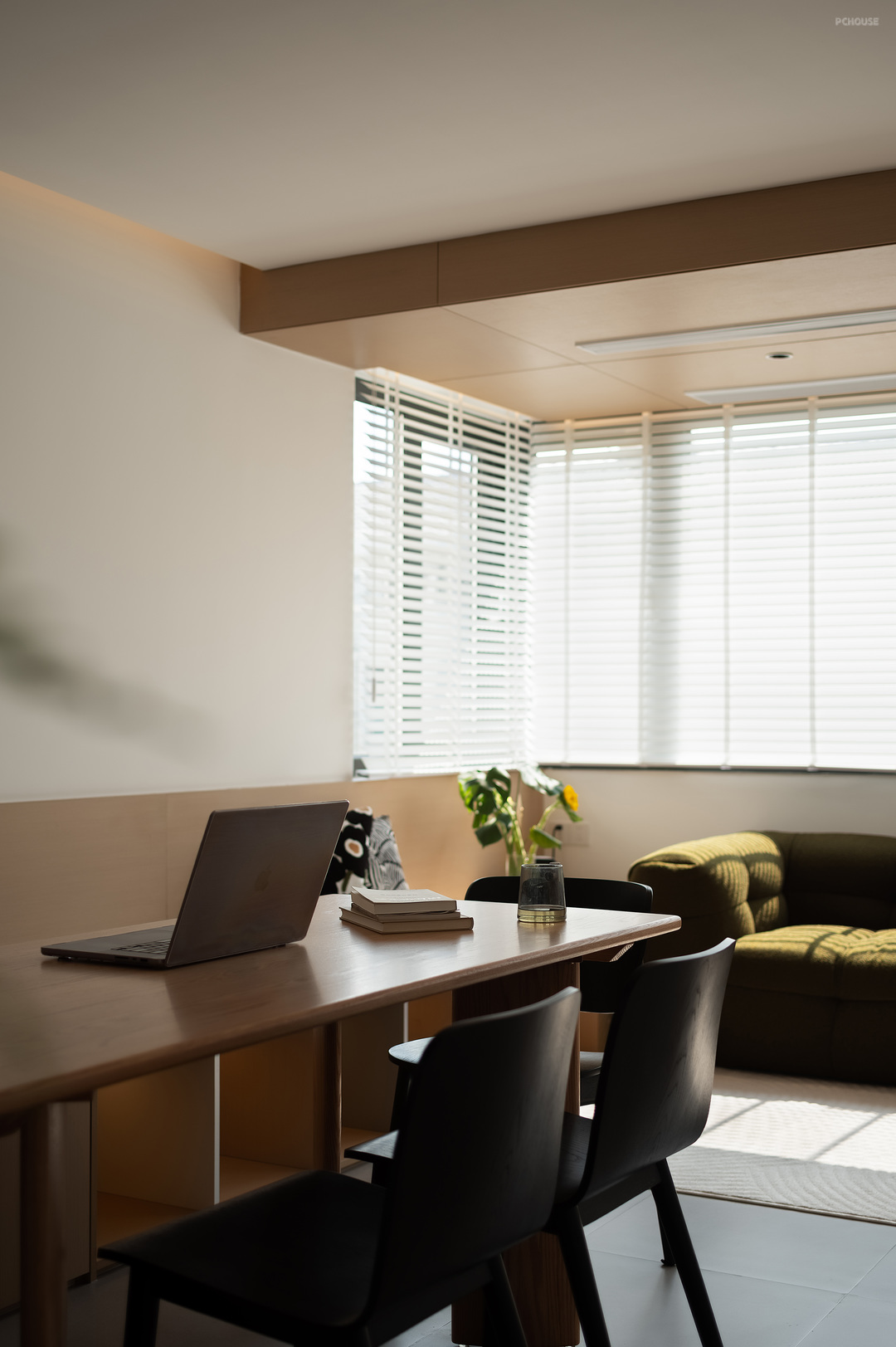 3.考虑到书房的层高问题,我们将书桌设置在书房的北墙,书桌面向北侧的墙体局部拆除,预留了一个窗洞,不但提升空间的通透感而且提升了办公学习的体验感。