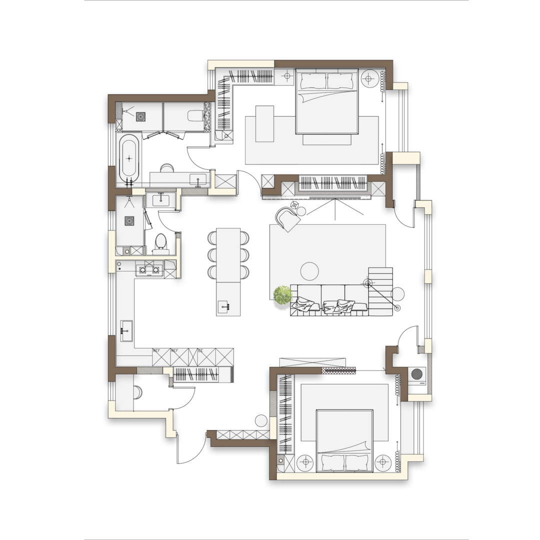 常住两人和一只狗狗,年轻屋主偏好气质型住宅设计,喜欢极简中带有一点高级的质感,主要诉求:希望公区更开放一些,为爱宠留出更多的活动空间;同时想要一个大大的卫生间...