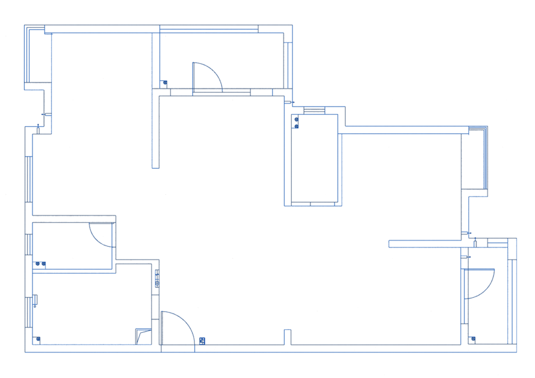 房屋是毛坯交付,空间十分开阔,但也可以从原始户型图中看出几个明显的问题: