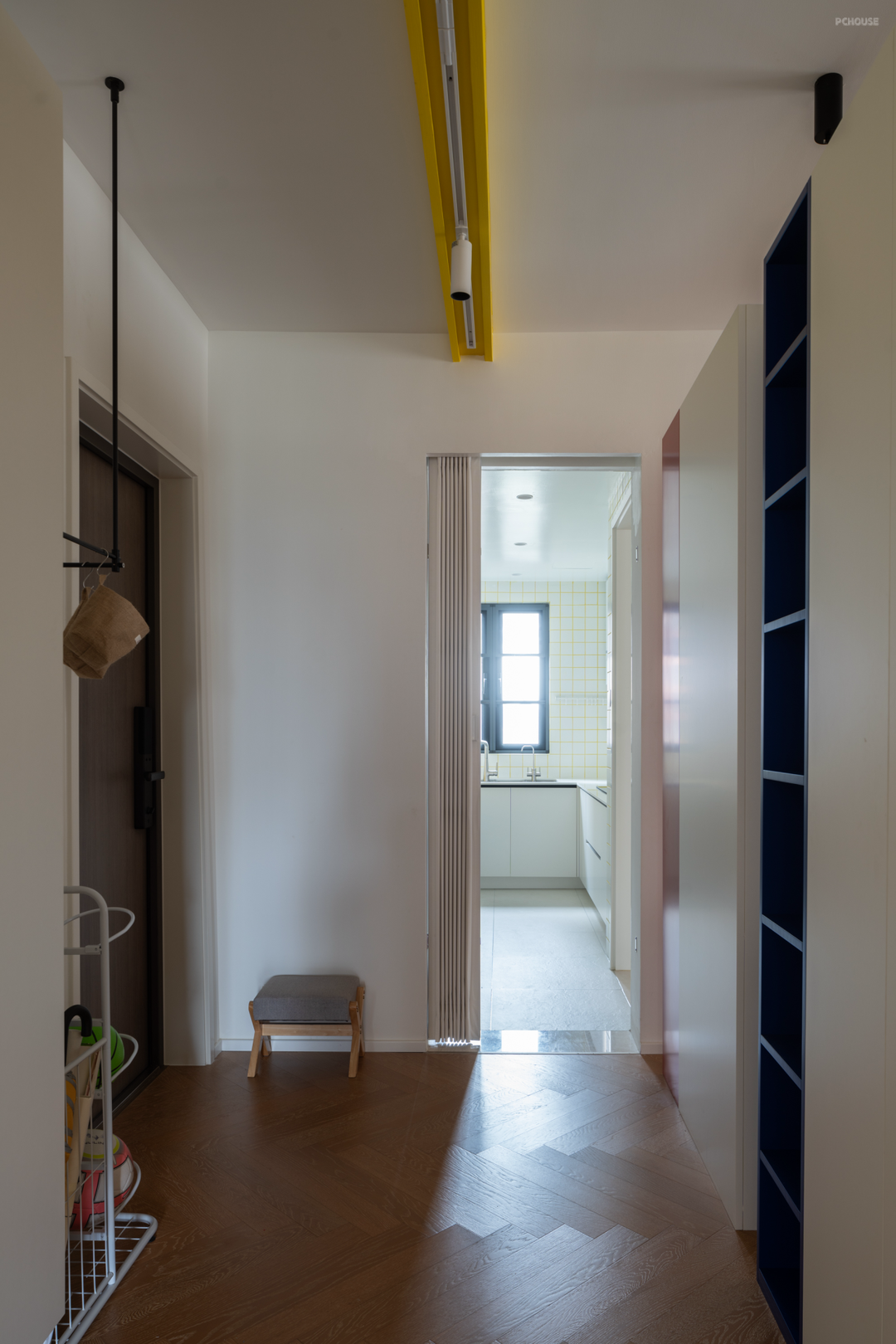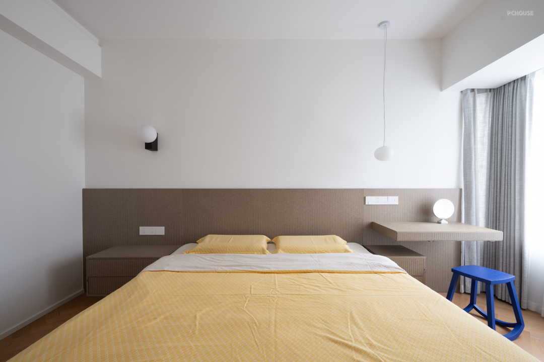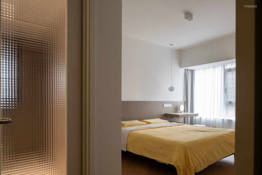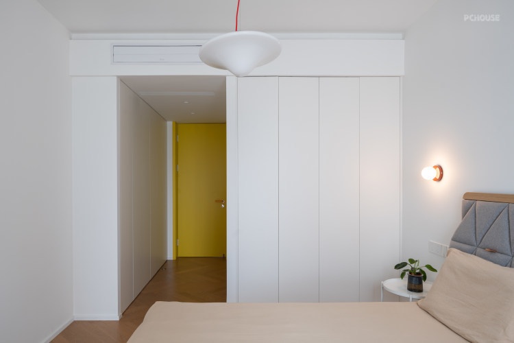 两扇面向公区的黄色的卧室门,也成了空间秩序感的一部分。