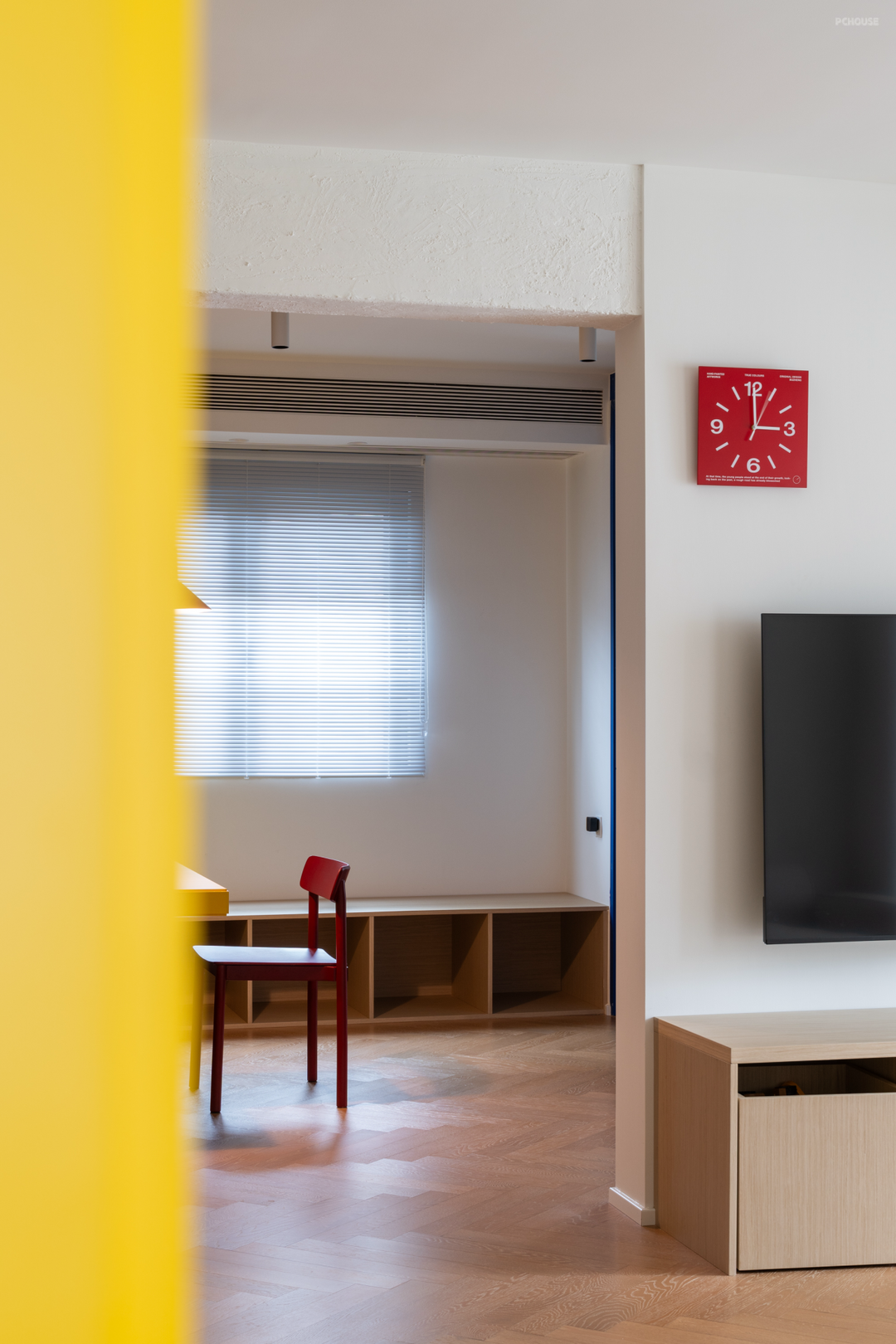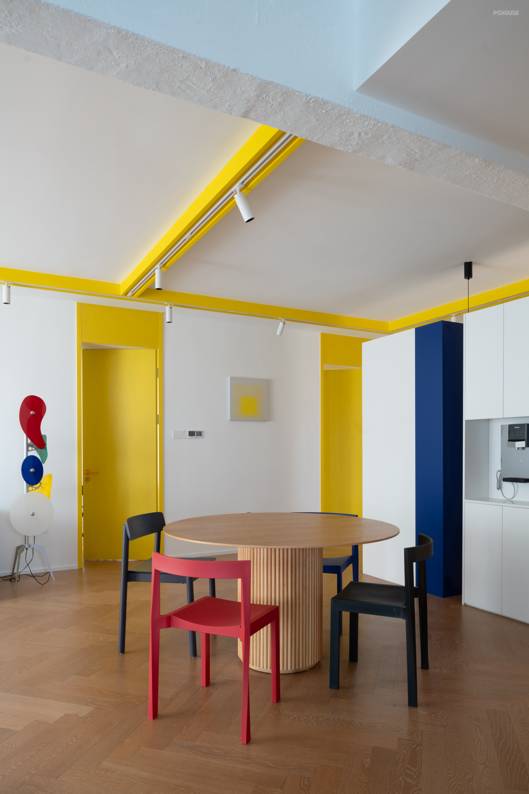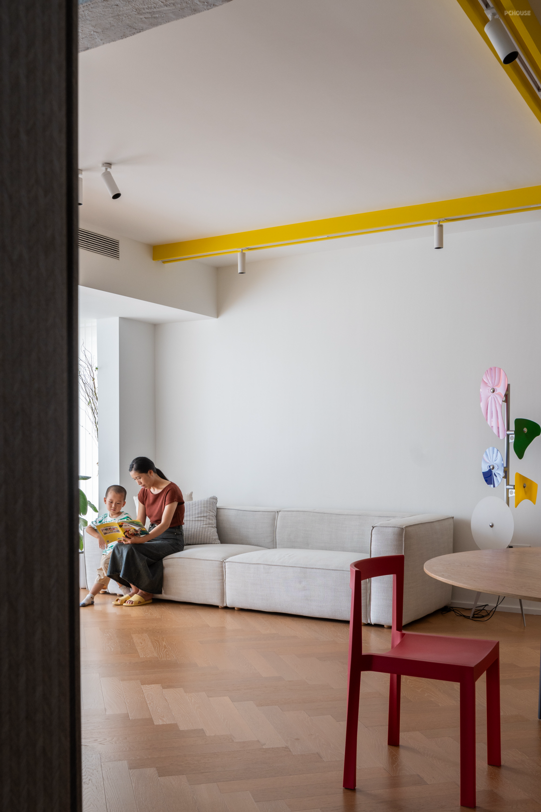 两扇面向公区的黄色的卧室门,也成了空间秩序感的一部分。