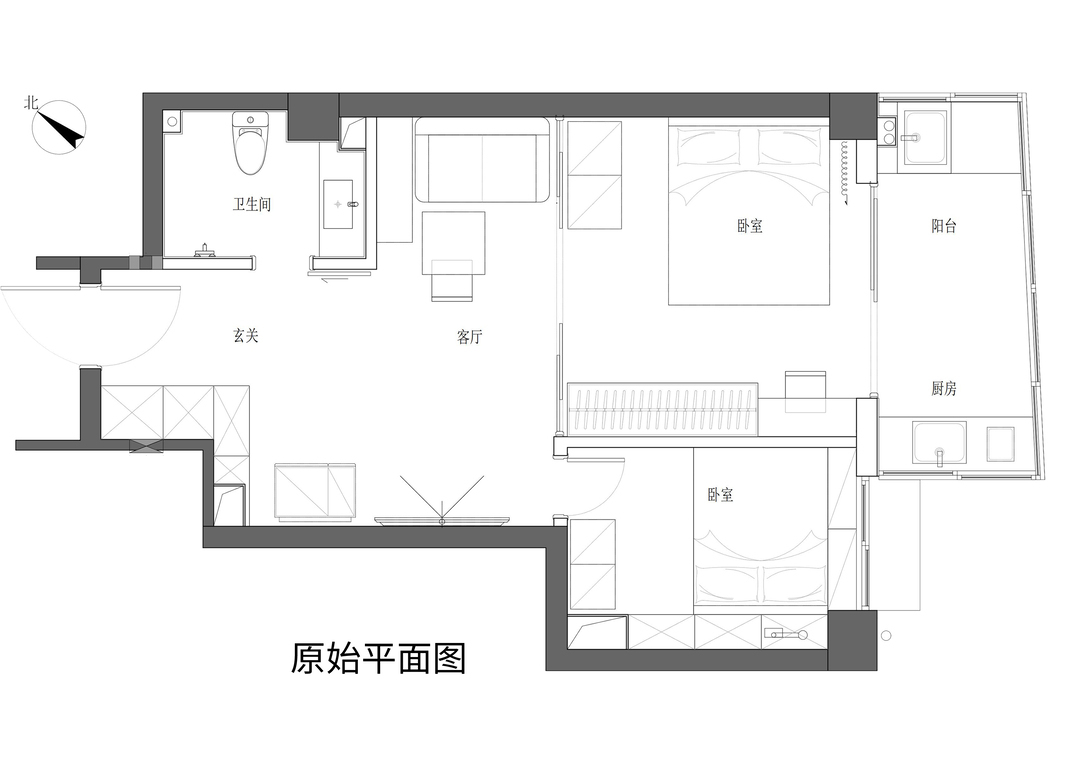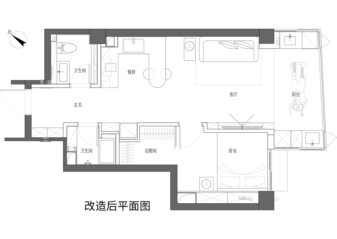 ①两居室改为一居室,扩大了客厅活动空间,将独居生活的主卧舒适度最大化,也为步入式衣帽间留下余地。