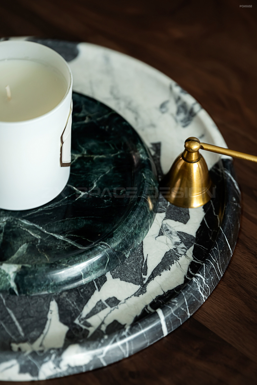 利用家中大理石制作后的边角材料,加工成精美杯垫与餐盘。