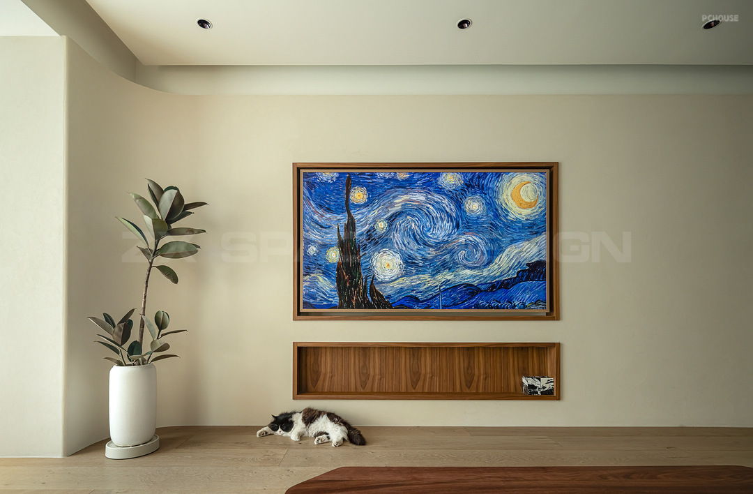 艺术漆背景,镶嵌高品质艺术画框电视。
