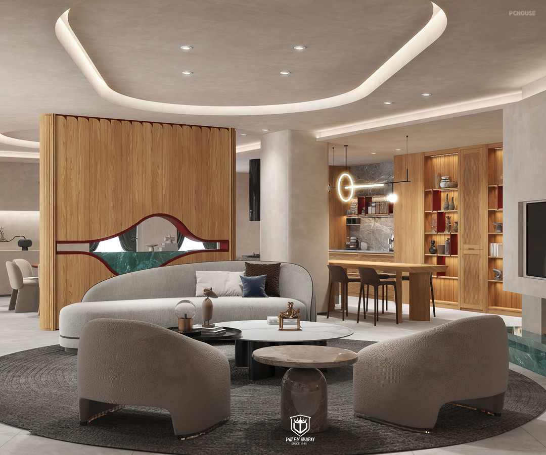 在不同场域间传递了统一的情调,以精确比例倾诉出空间的热情