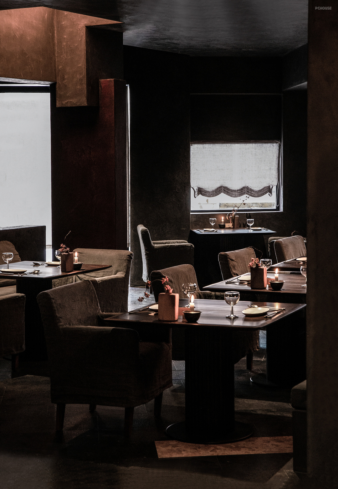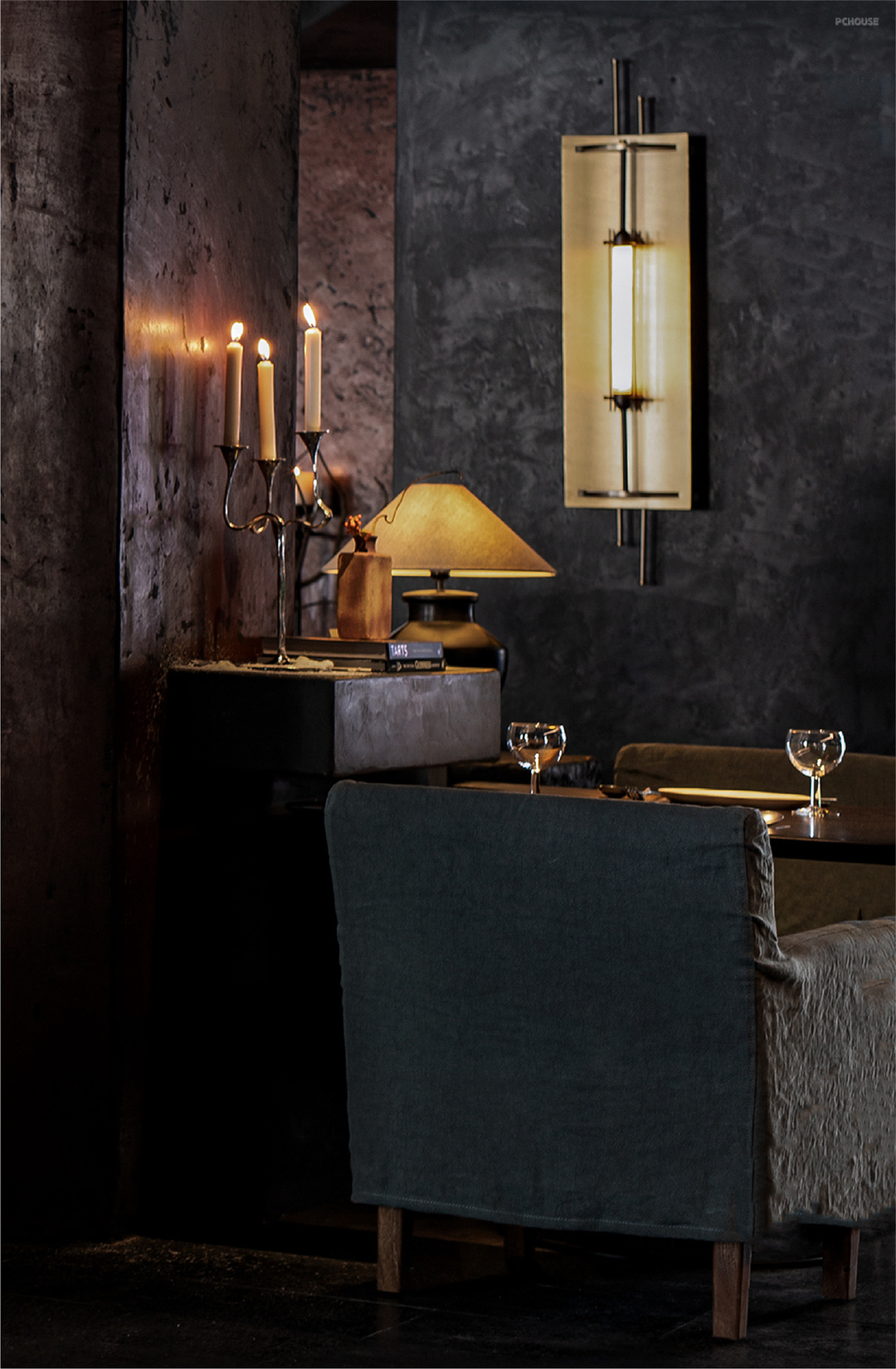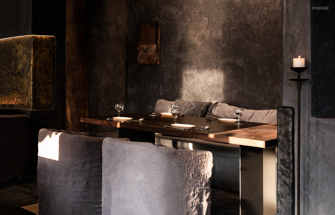 在空间的工艺探索中,我们直面扎根于大地之中朴质且原始的自然力量,携手荒雀水泥艺术家,独家打造“灰金X大地漆红”色系漆面,并糅合金箔工艺与几何构造,使空间呈现油画般的质感与肌理。