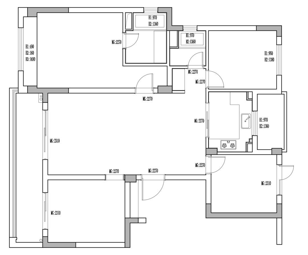 3.餐厅夹在客厅和厨房中间,还需要给通往主卧和儿童房留出过道