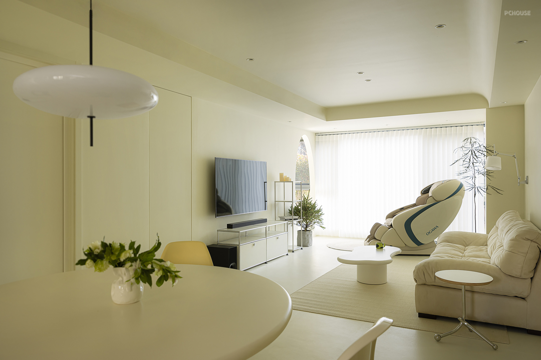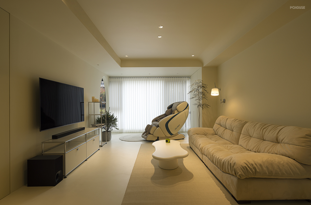 极简干净的客厅哪怕放上一个体型颇大的按摩椅都清清爽爽,满足身心愉悦感
