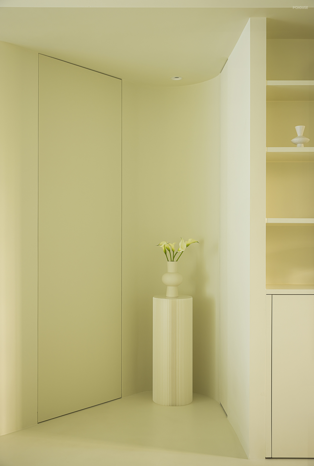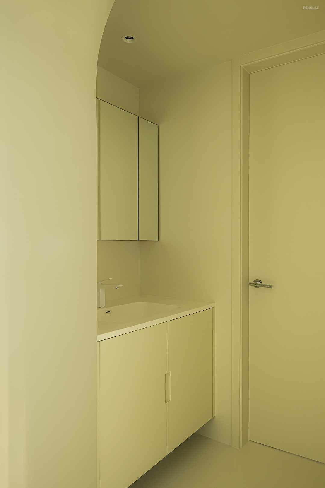 沿用的仍是公区的微水泥,柜门板按微水泥的色号进行烤漆处理,以达到视觉的统一性