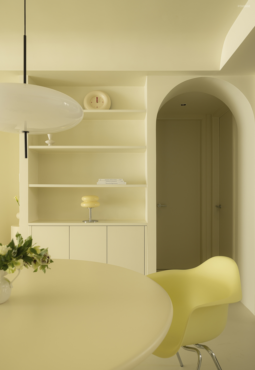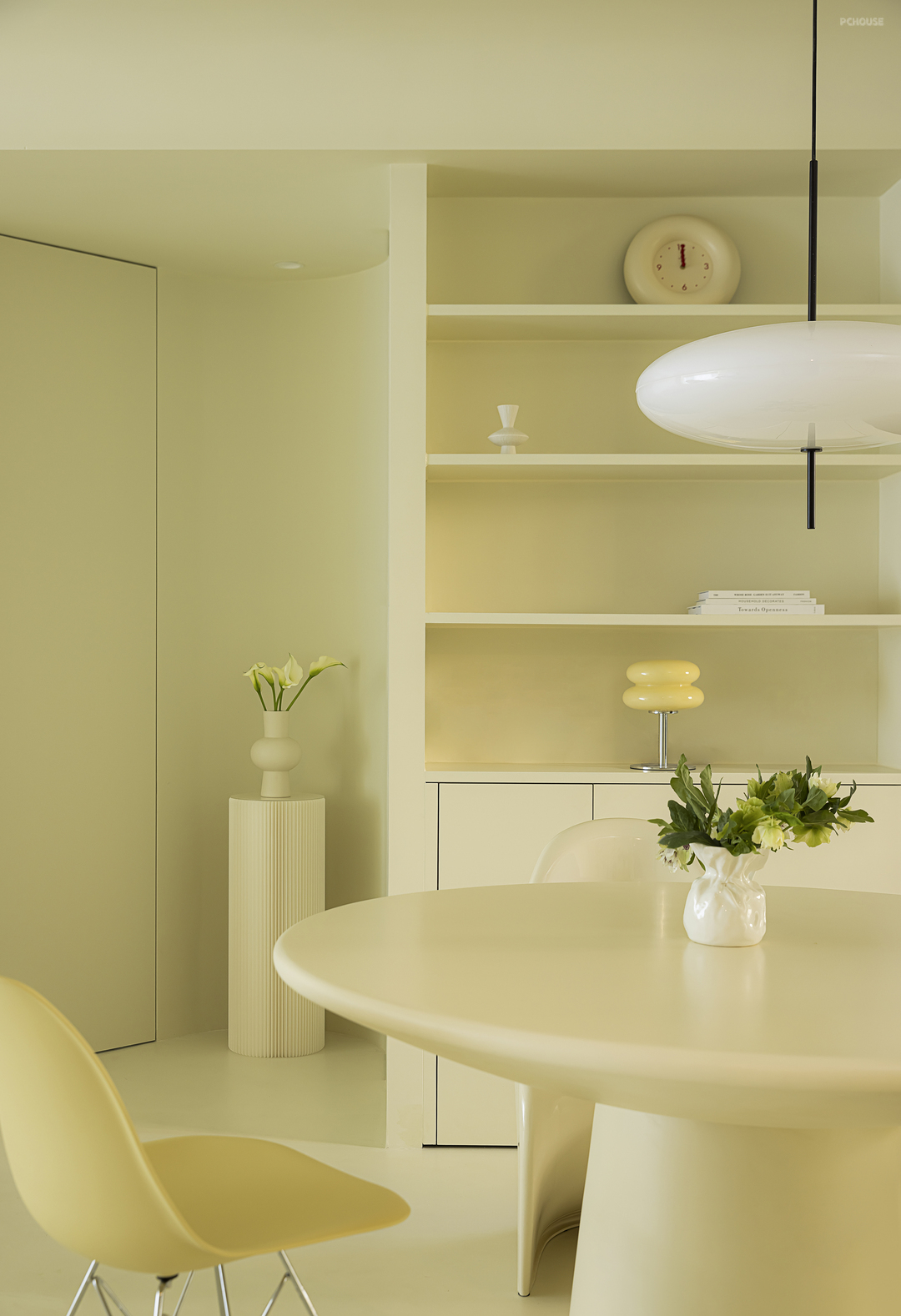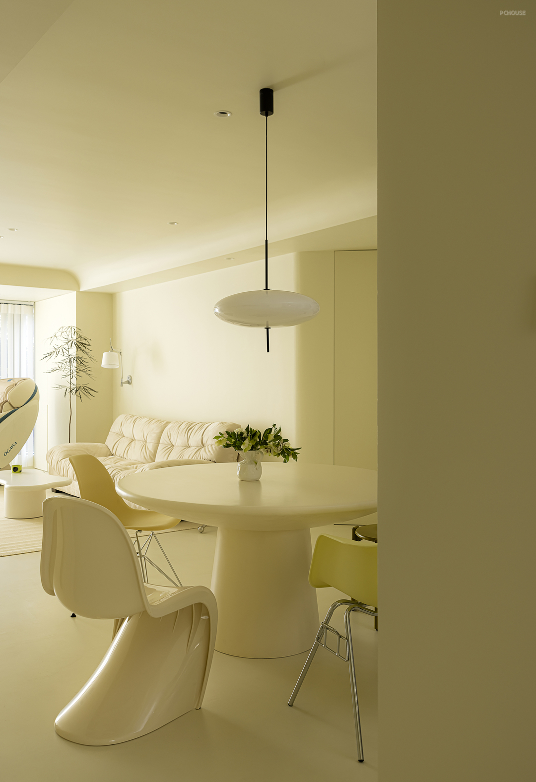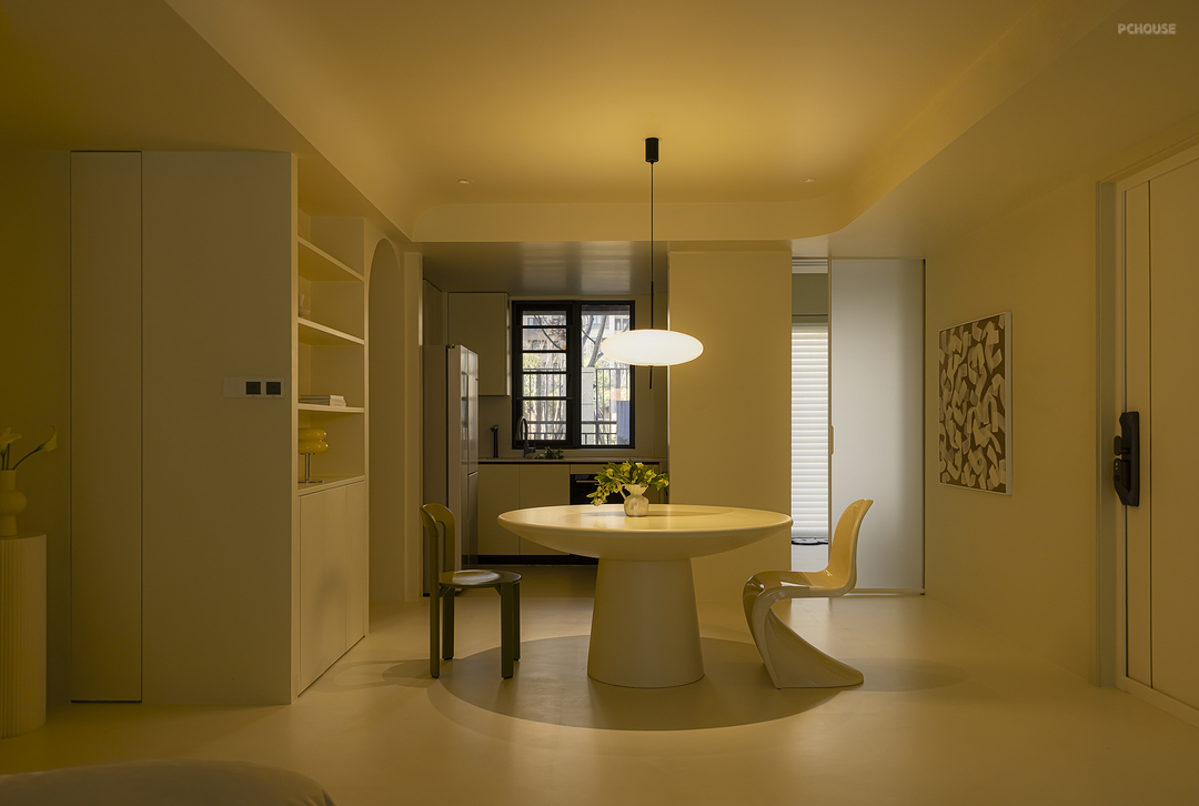 3.餐厅采用了圆桌,增加违和感的同时还给主卧和儿童房提供了便利