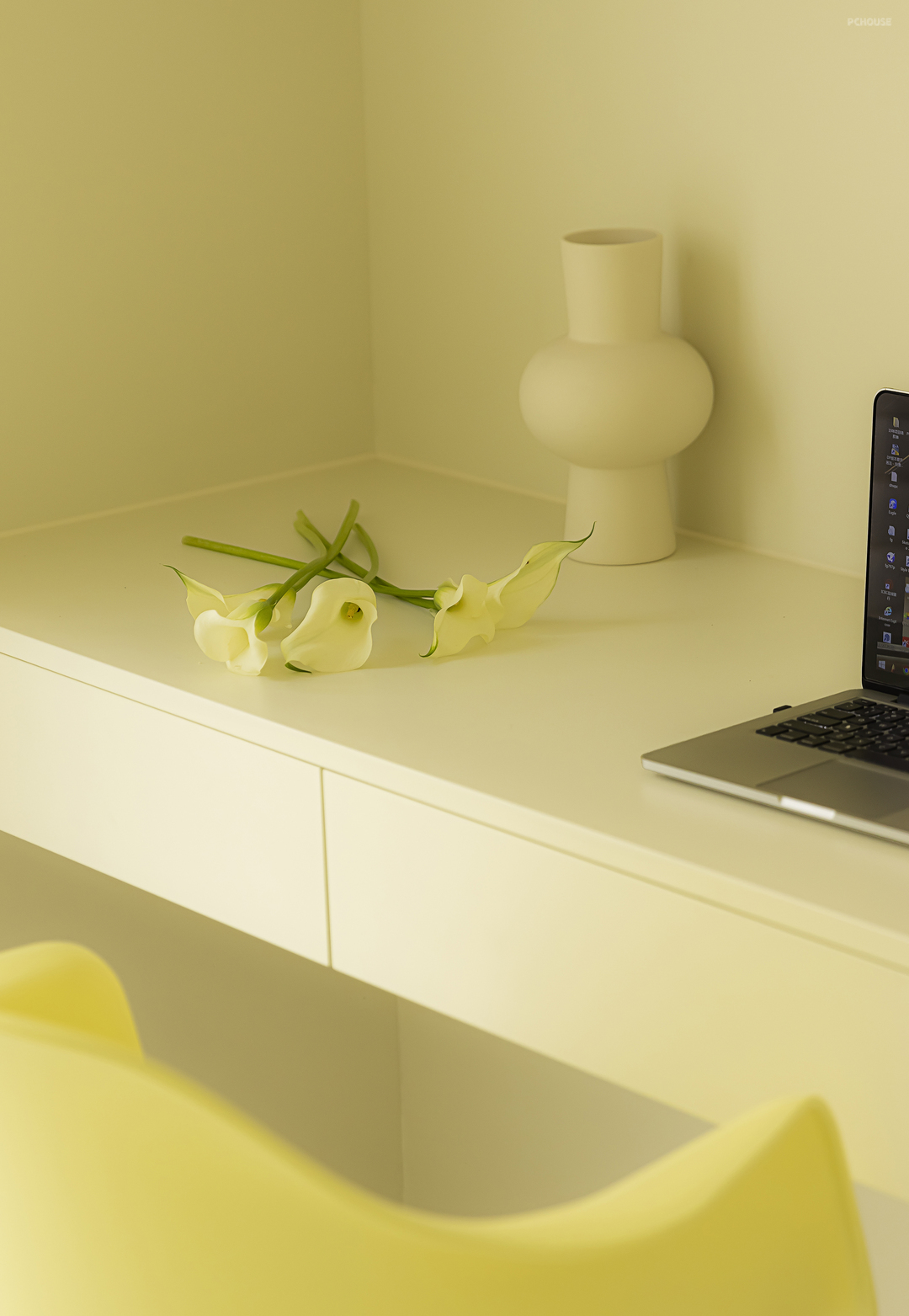 顶面吊柜和写字台抽屉满足日常藏书或者设备存放