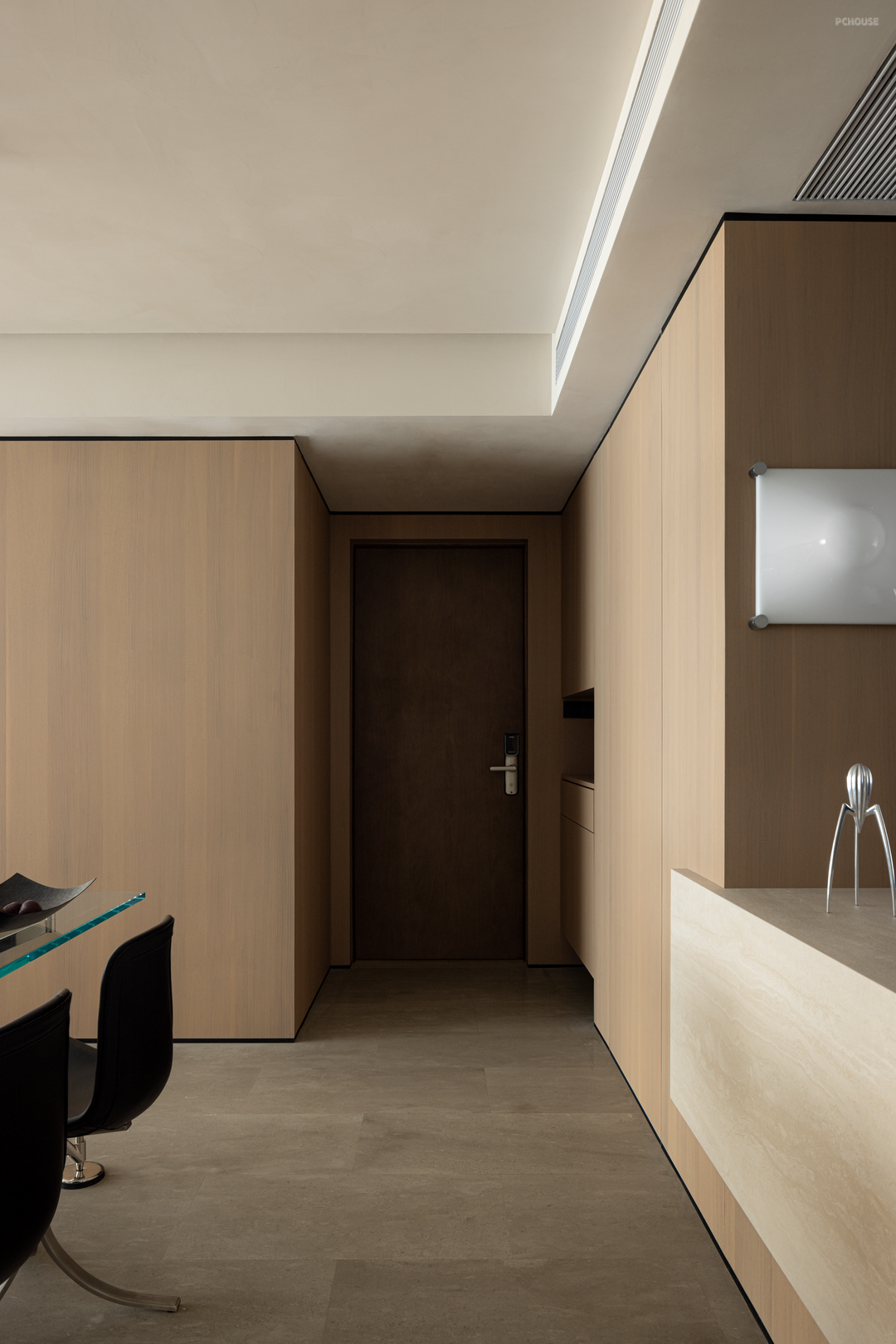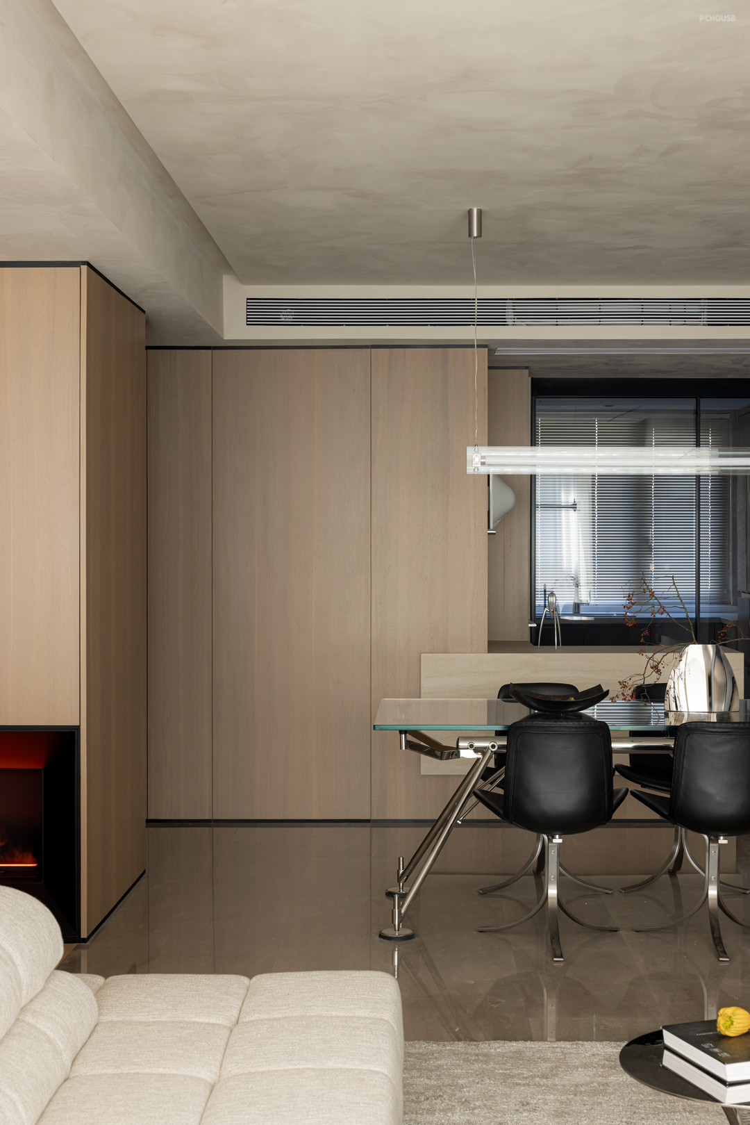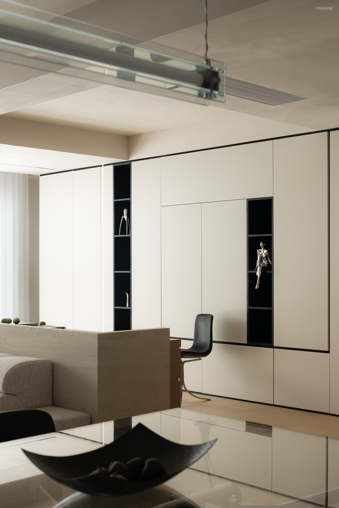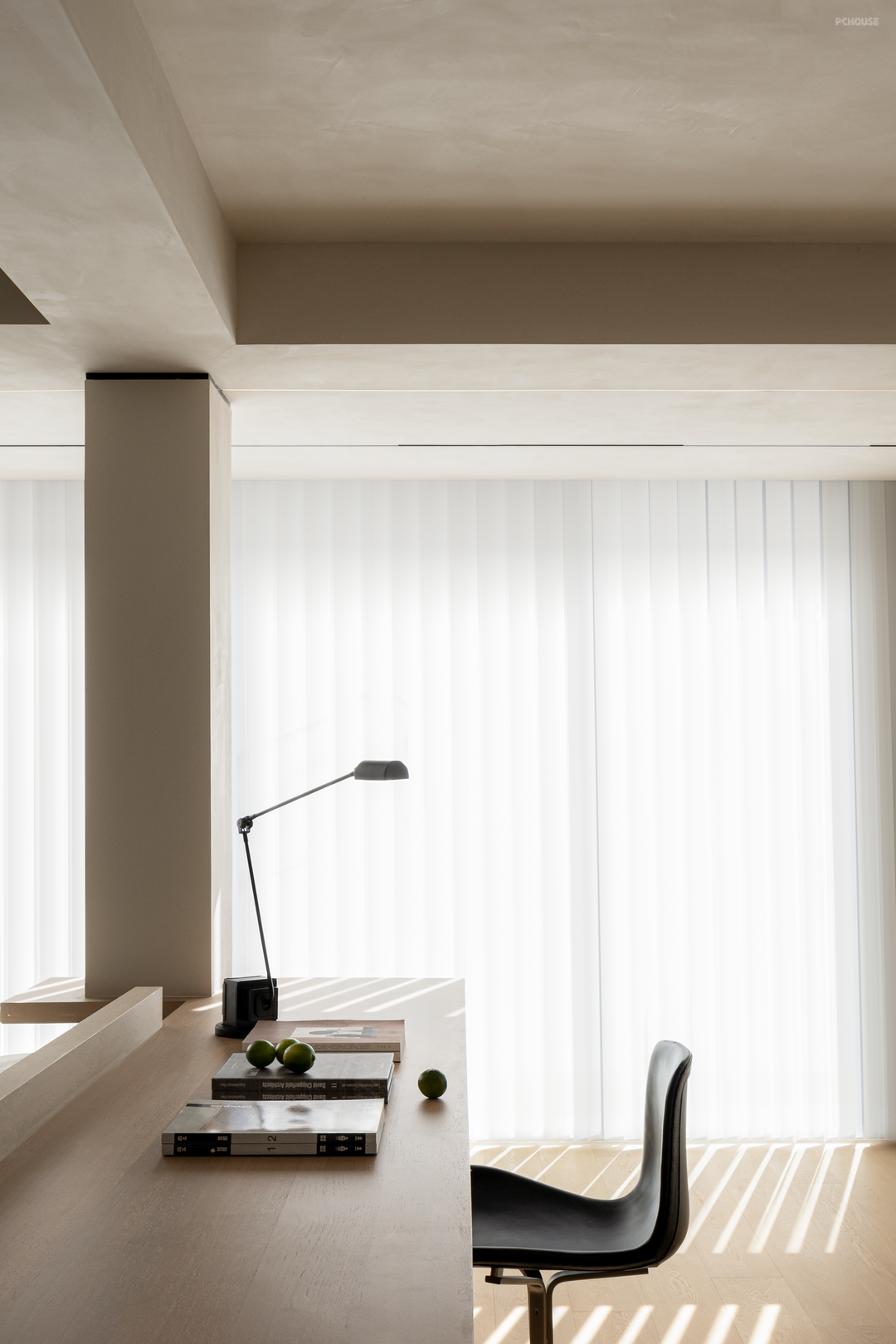 书房采用开放式设计,使得不同区域之间的界限变得模糊,创造出更加宽敞、通透的居住环境。"无界"设计让家庭成员在空间中自由流动,促进了家庭成员之间的交流和互动,同时也与现代科技的智能化(全屋智能系统)应用相契合,提升了居住的舒适度和便利性。