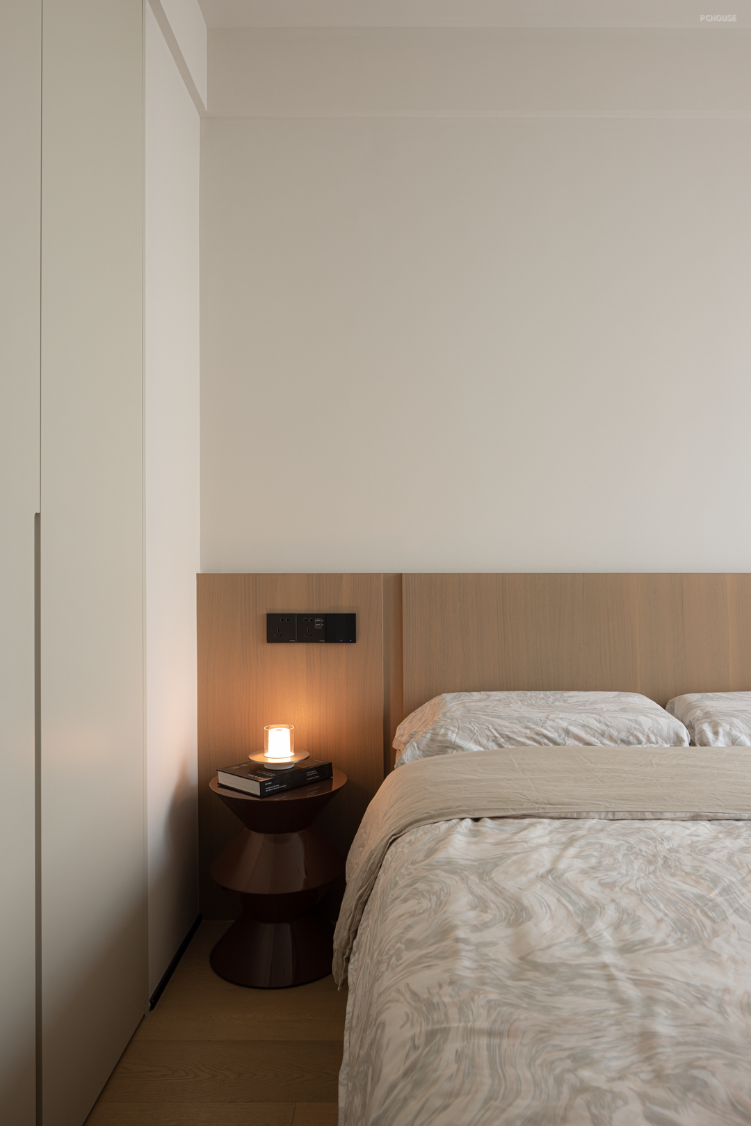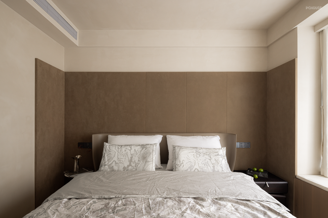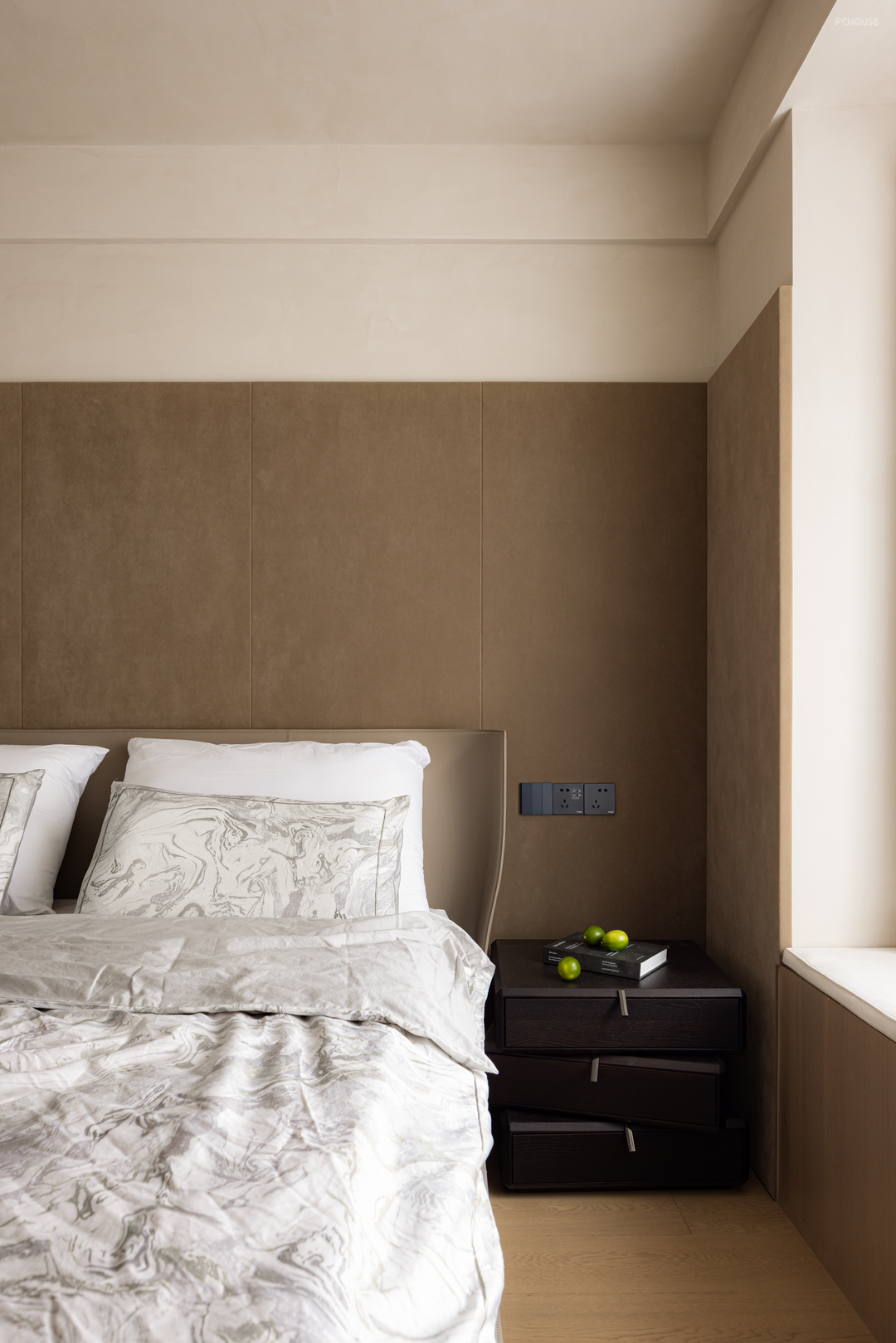 温暖有层次的色调营造出温馨、宁静的卧室氛围。充足的自然光和柔和的灯光创造出温暖、舒适的卧室氛围。