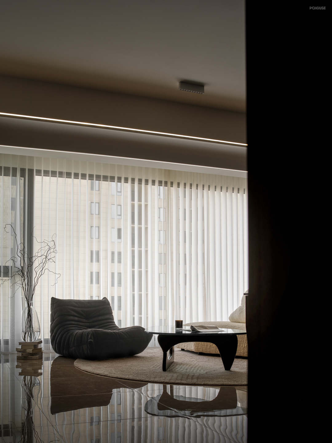 客厅是一家四口生活的中心,空间感与自由度是最重要的考量。