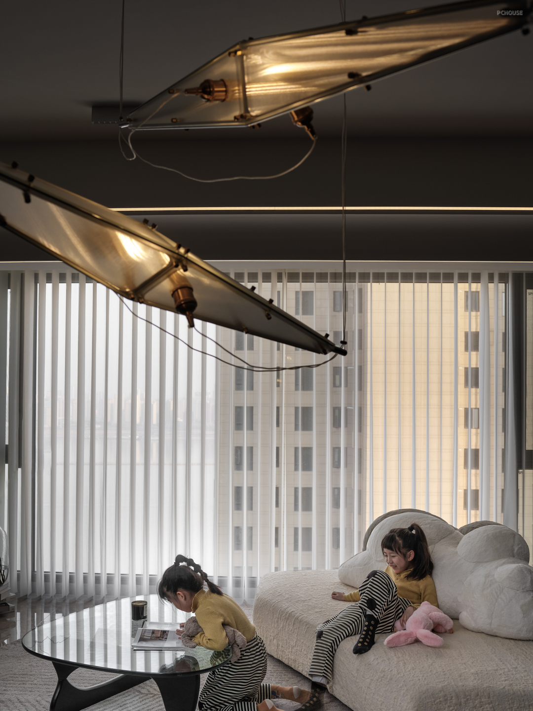 将阳台扩进室内,超大幅落地玻璃窗,既保留了一览无余的江景视野,又增加了女儿们的放肆玩耍空间,坐在慵懒的沙发上,享受那些被生活治愈的时光。