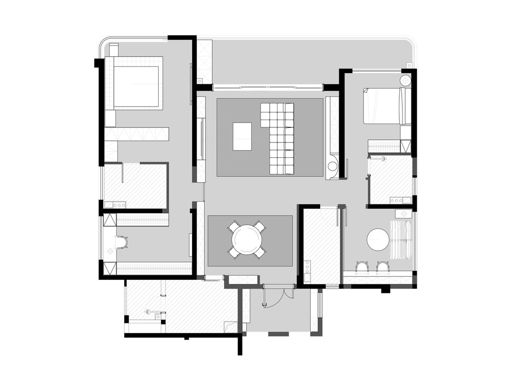 前言: 作为一个精装房改造项目,设计要面对的不仅仅是创新,而是在尽量保留原始结构的基础上,进行二次创作。希望通过设计,简化现代工作生活所带来的繁杂与压力,而能丰富内心的精神生活,着重于内在的需求,永远有能力保留自身的纯粹。