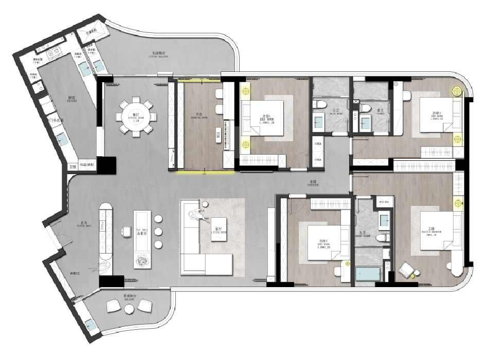本项目是277㎡大平层精装房改造,常住人口为一对夫妻和两个儿子,长辈偶尔来住。