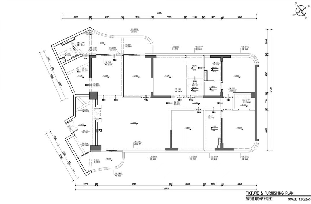 ②客厅的原始结构南北景观特别好,但南北交流性不强,每间房独立隔开缺乏互动