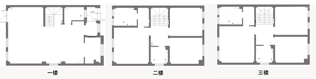 ◆ 原结构中将一层门厅和卫生间整体向外移动,规划出电梯空间,二、三楼同样增设电梯间