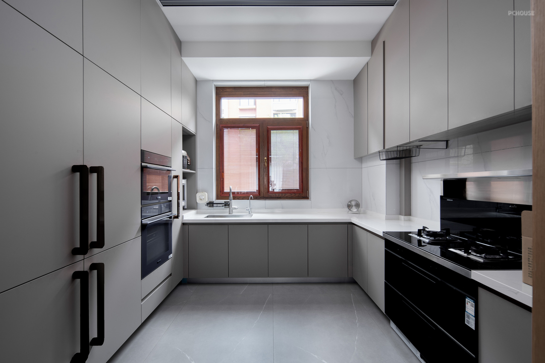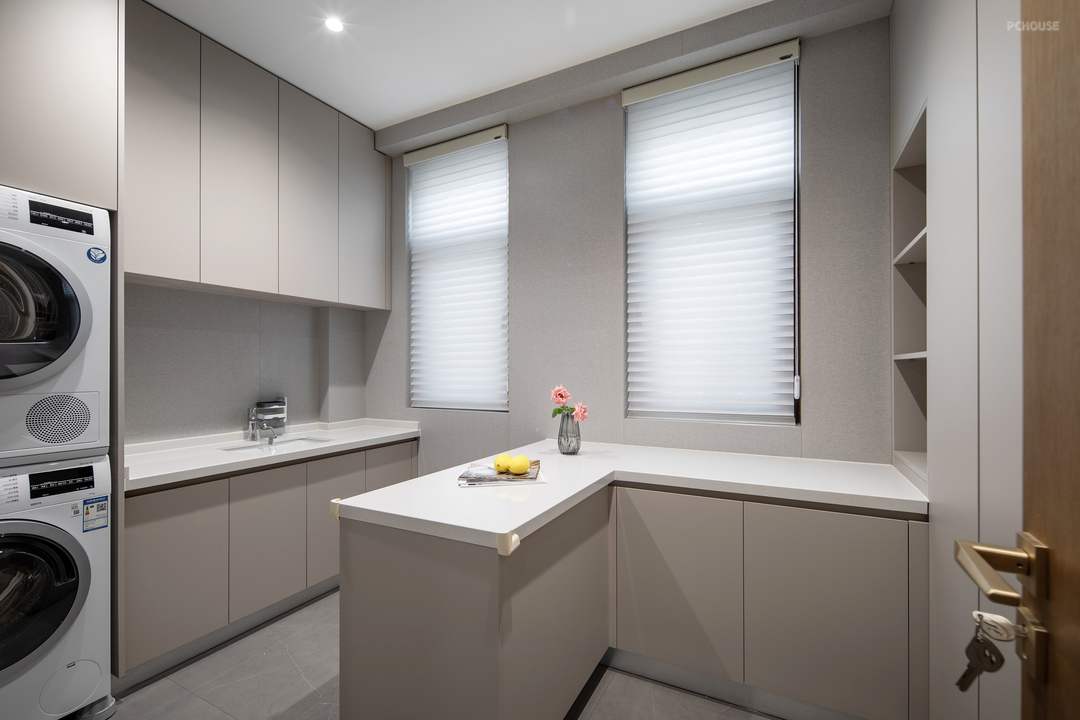○ 空间内无论是储物柜还是嵌入柜内的家电,统一浅色配置,干净治愈。