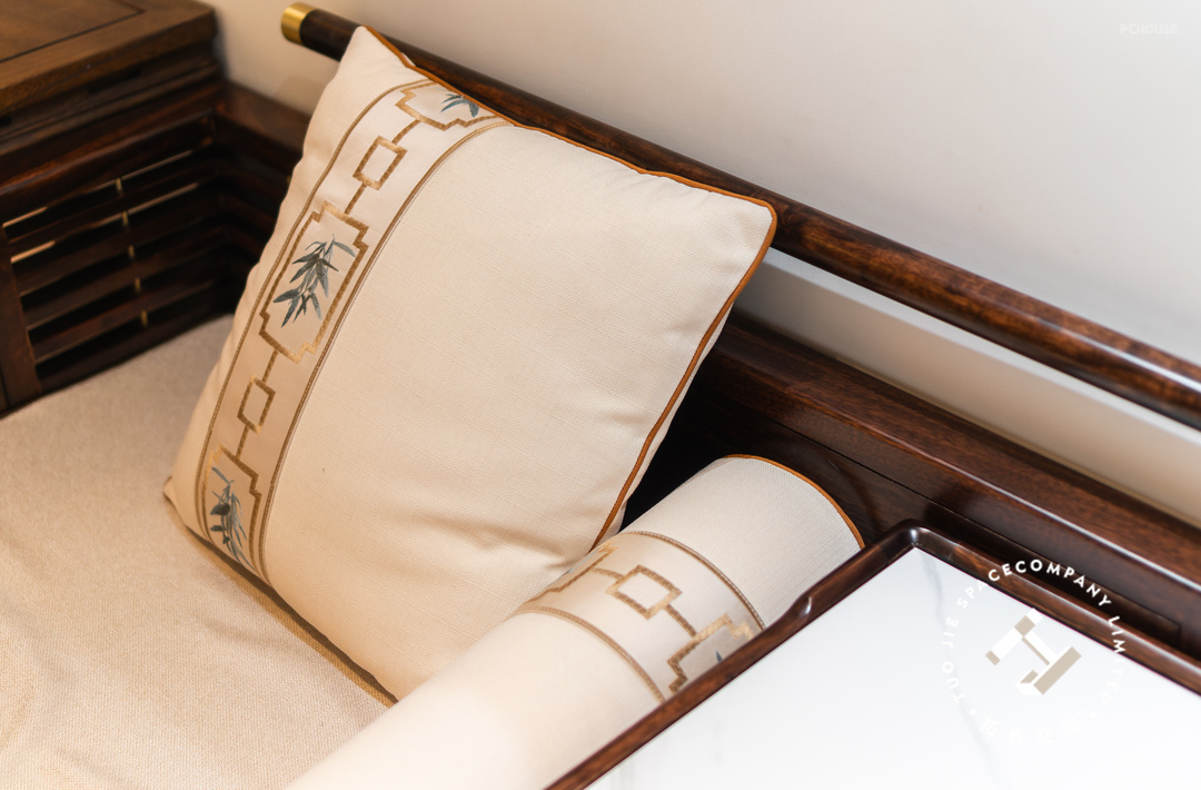 气质儒雅的沙发,中间搭配雅致的小案几,散发诗意舒适的氛围,在台上烹茶品茗、落子对弈,享受来自东方的慢节奏生活方式。