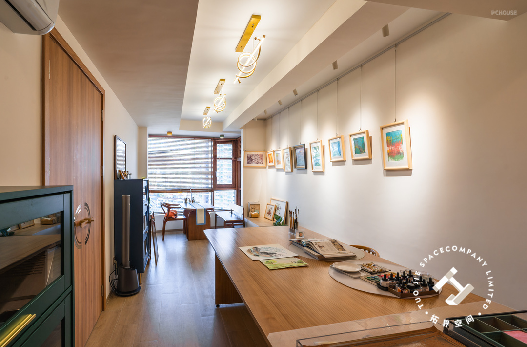 墙上挂满了主人的作品,灯光照在每一幅画上,如同置身于画廊当中,感受着艺术的魅力,沉醉于独特的优雅氛围。