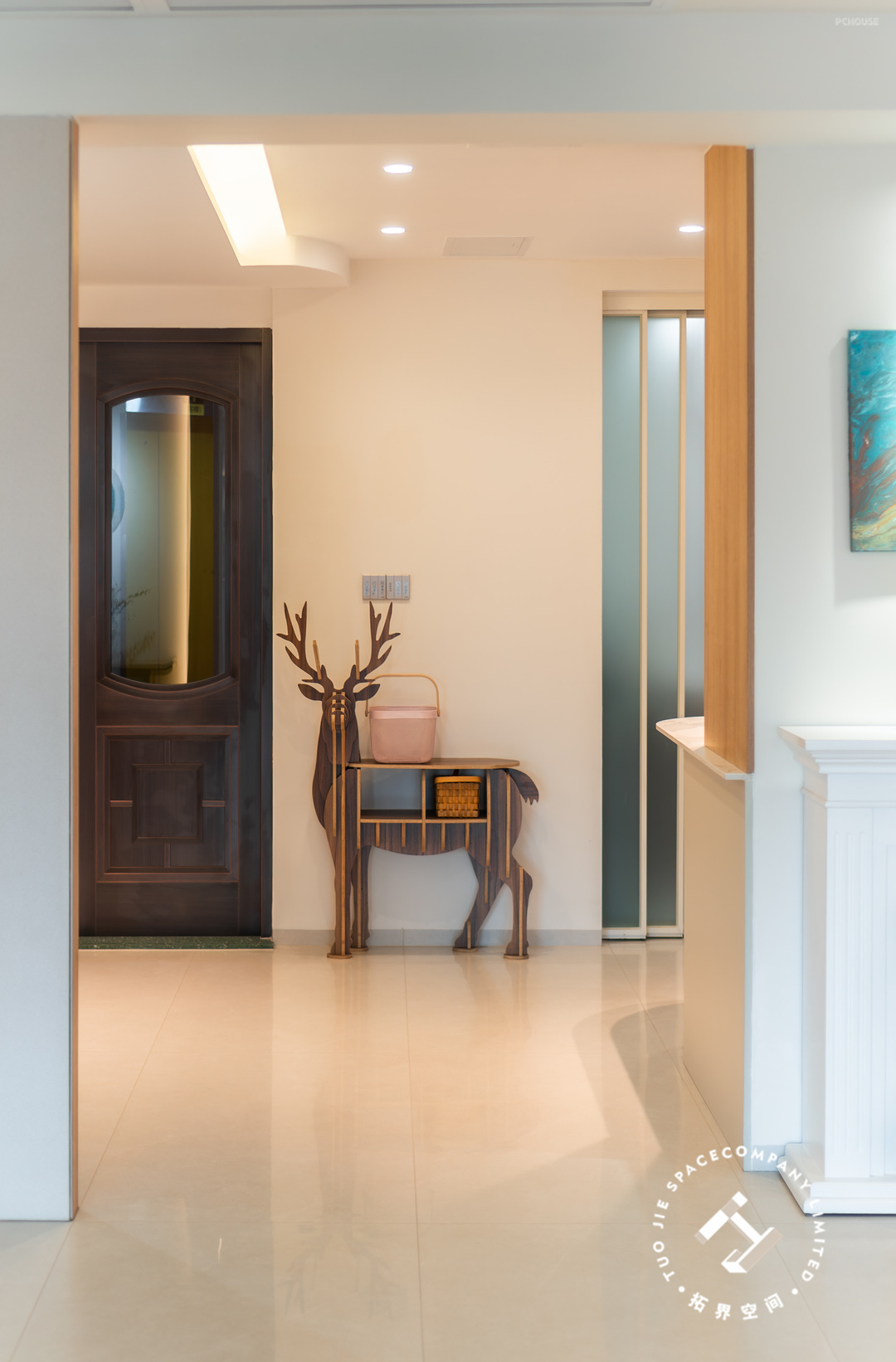 做一道拱门设计,在墙上加上温润的木饰面装饰,增强空间的美感;安装几个挂钩,悬挂包包或帽子,美观实用,也是十分有趣的角落。