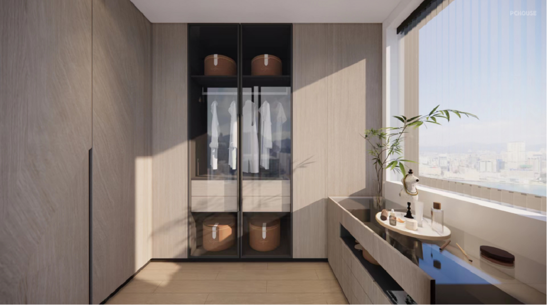 主卧设计为套房,门厅作为第一印象,大理石材质在自然光线下熠熠生辉,达至视觉上的轻奢与优雅,彰显高级的生活品味。
