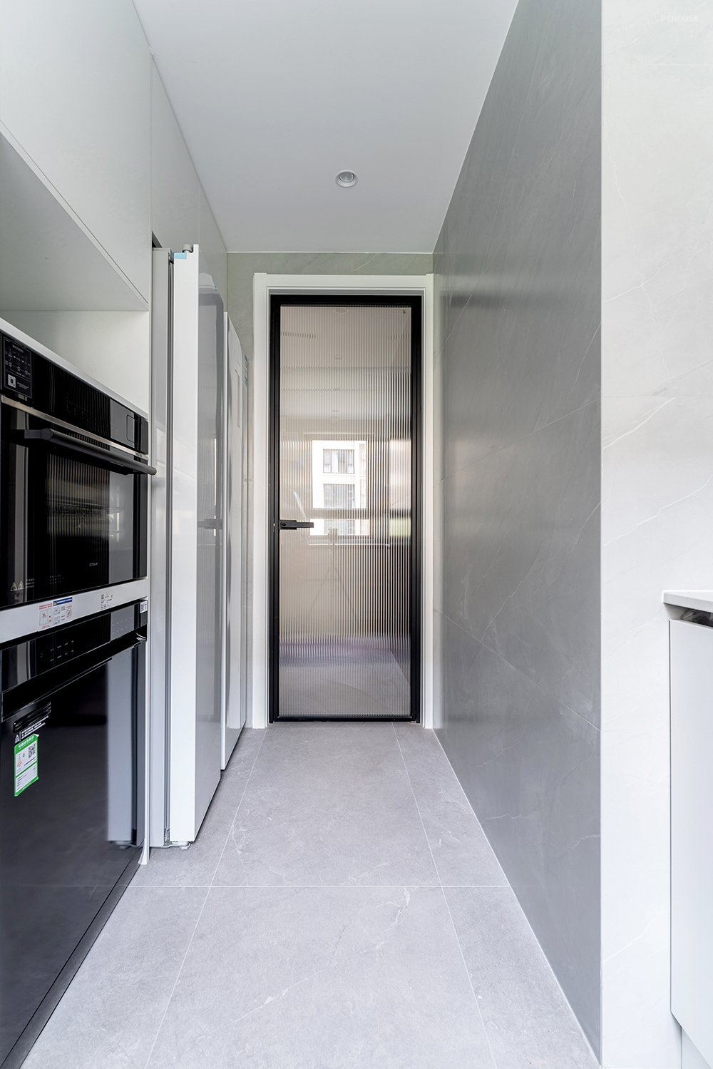 电器柜不仅满足了烤箱和洗碗机嵌入,就连一台超大容量的双门冰箱,也能完全放入其中,丝毫不显突兀。并且门口处,还能留出1m宽的过道,让开门和走动不受影响。