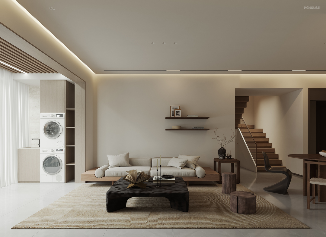 整屋采用了米色涂料,色彩舒适,温暖而温馨。这种涂料的选择不仅为每个角落带来了艺术感,更让整个空间弥漫着温暖的氛围。同时,我们还运用了现代风格中常见的黑色碳木色系元素,它如同画龙点睛之笔,使整个设计舒适温暖。
