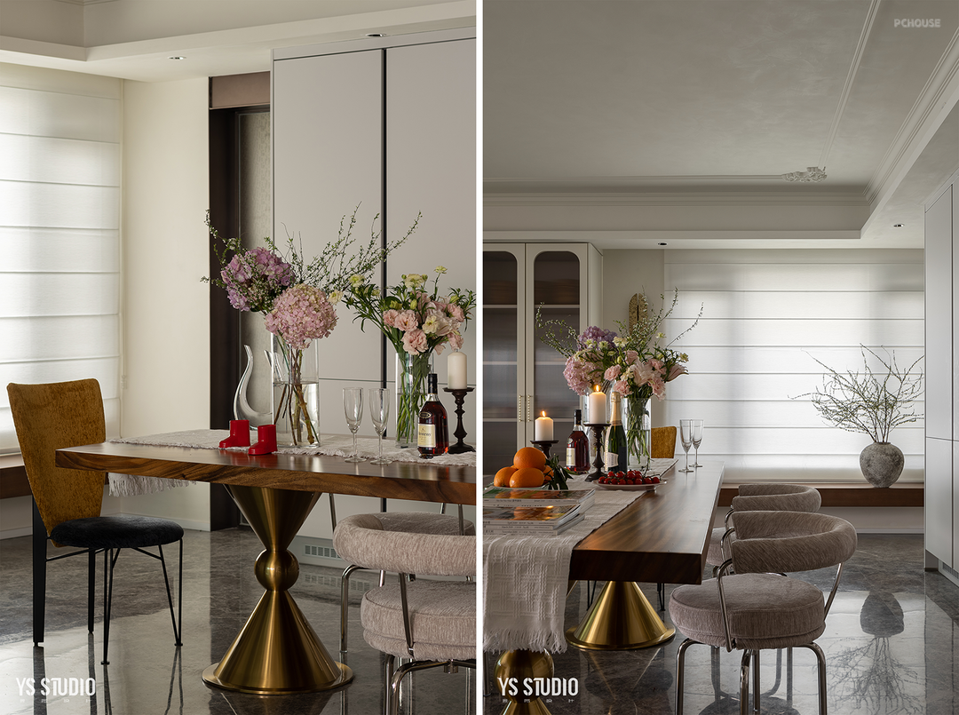 黄铜带来了古典的精致,平衡了空间的层次、风格和特点。