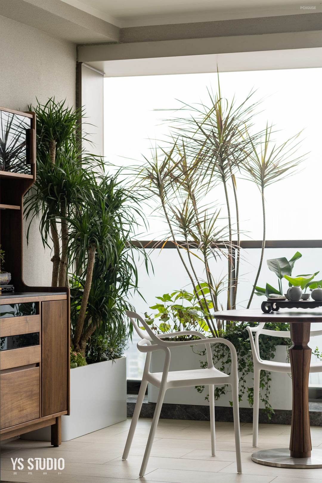 这个家的天然优势,必少不了开阔的阳台视野、充足采光。我们在阳台上搭建了属于自己的生态角,咖啡木桌、绿植堆、下午茶角落,这是悠长的午后时分。