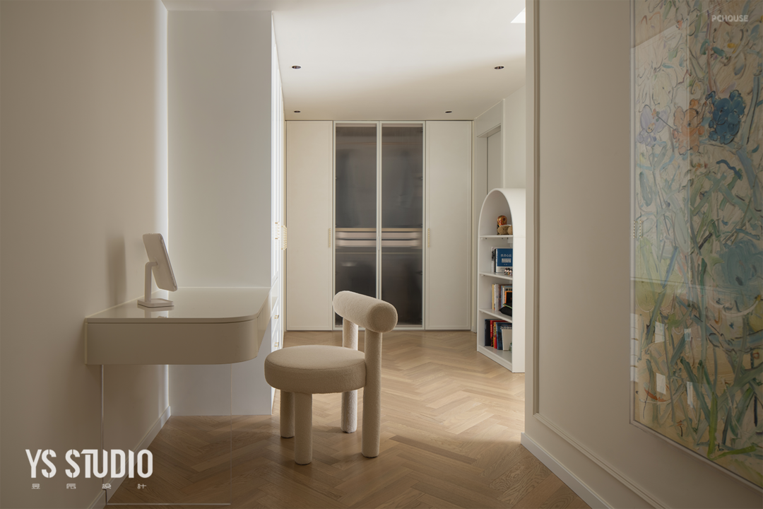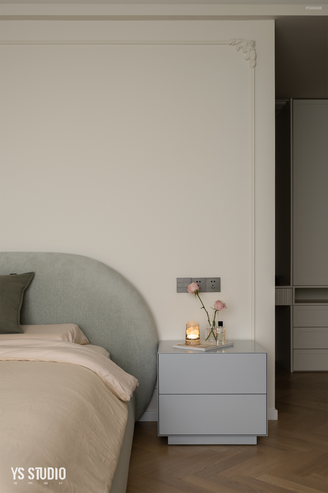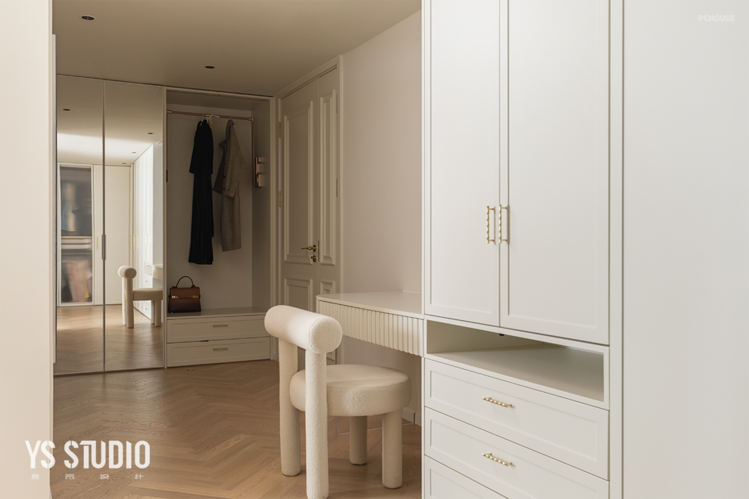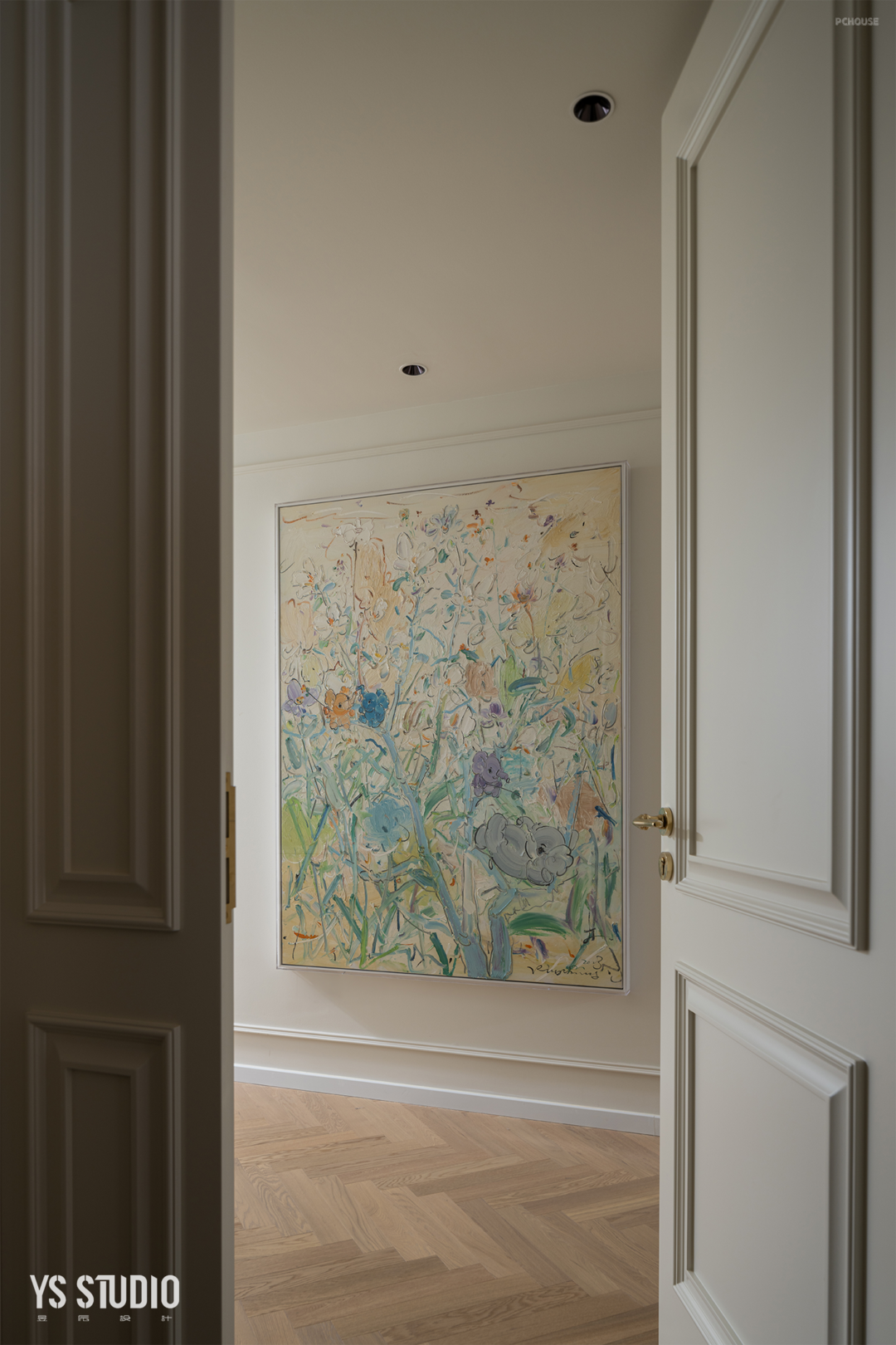 这一面以大理石黄铜壁炉造景,结合优雅的法式柜门,书写慵懒和随性。纸上得来终觉浅,当火光点燃的那一刻,你的夜晚才真正开始。