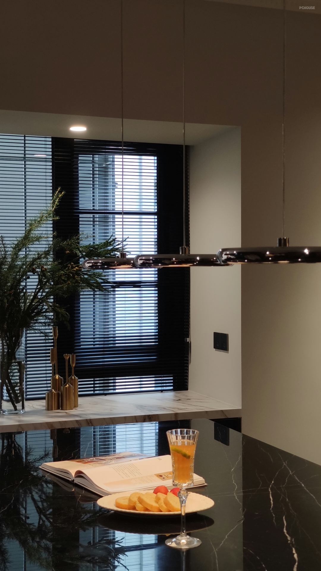 ▲开放式厨房很适合日常朋友过来一起动手做菜,聊天,特别的放松,深色大理石比白色更好打理,不用担心久了渗色的问题。#餐厅