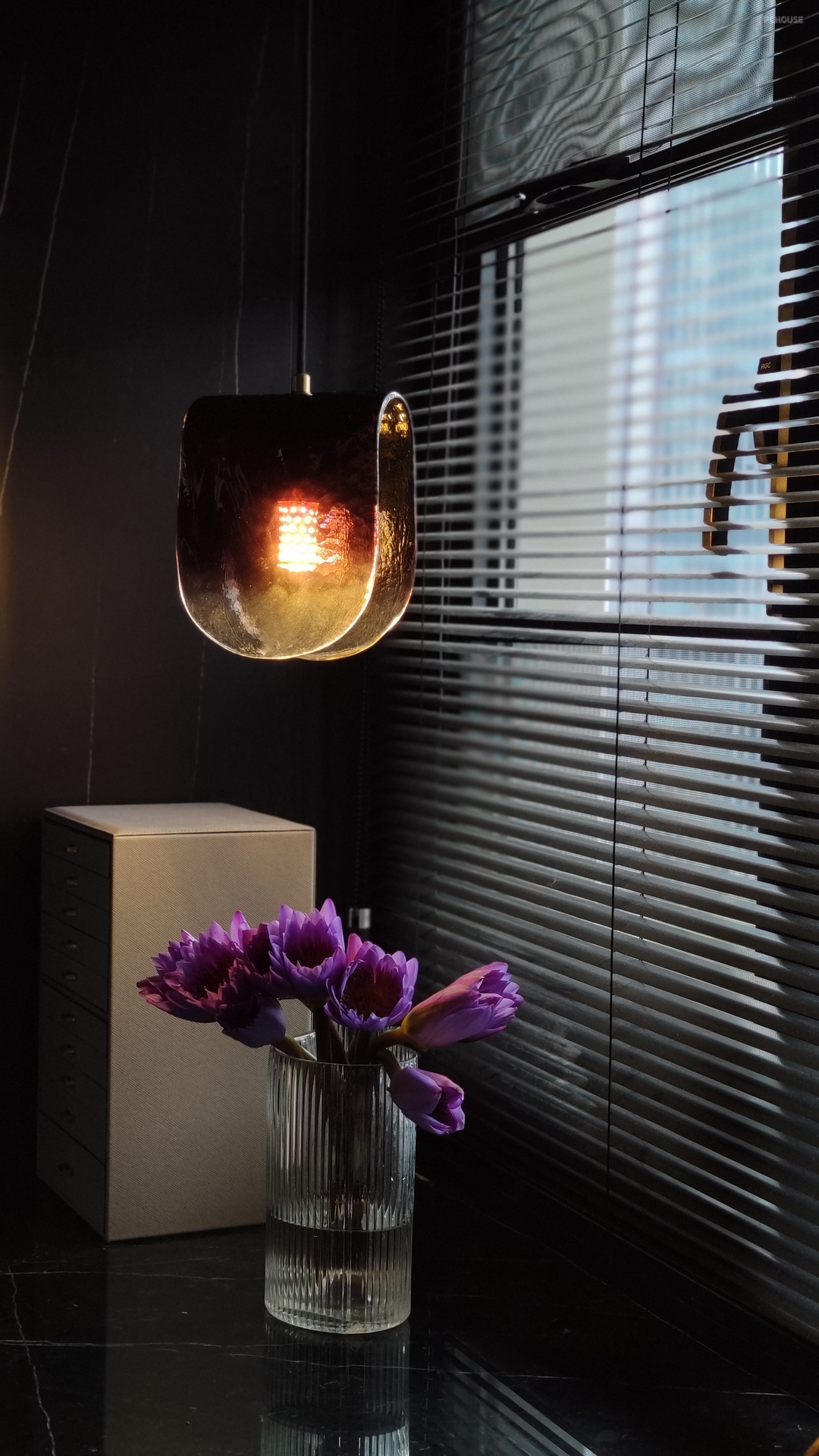 ▲岛台的吊灯可以用手机控制灯光,不同场景调到自己喜欢的亮度,白光暖光随意切换。