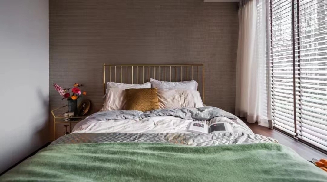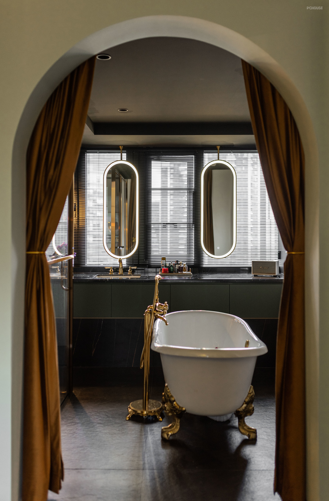 房子原户型是三房,沟通后改成了两房,有一间卧室与主卧打通,做成了一个套间,落地大浴缸,淋浴间,马桶间都做成分离式。设计施工落地后,家里是视觉与实用双收。