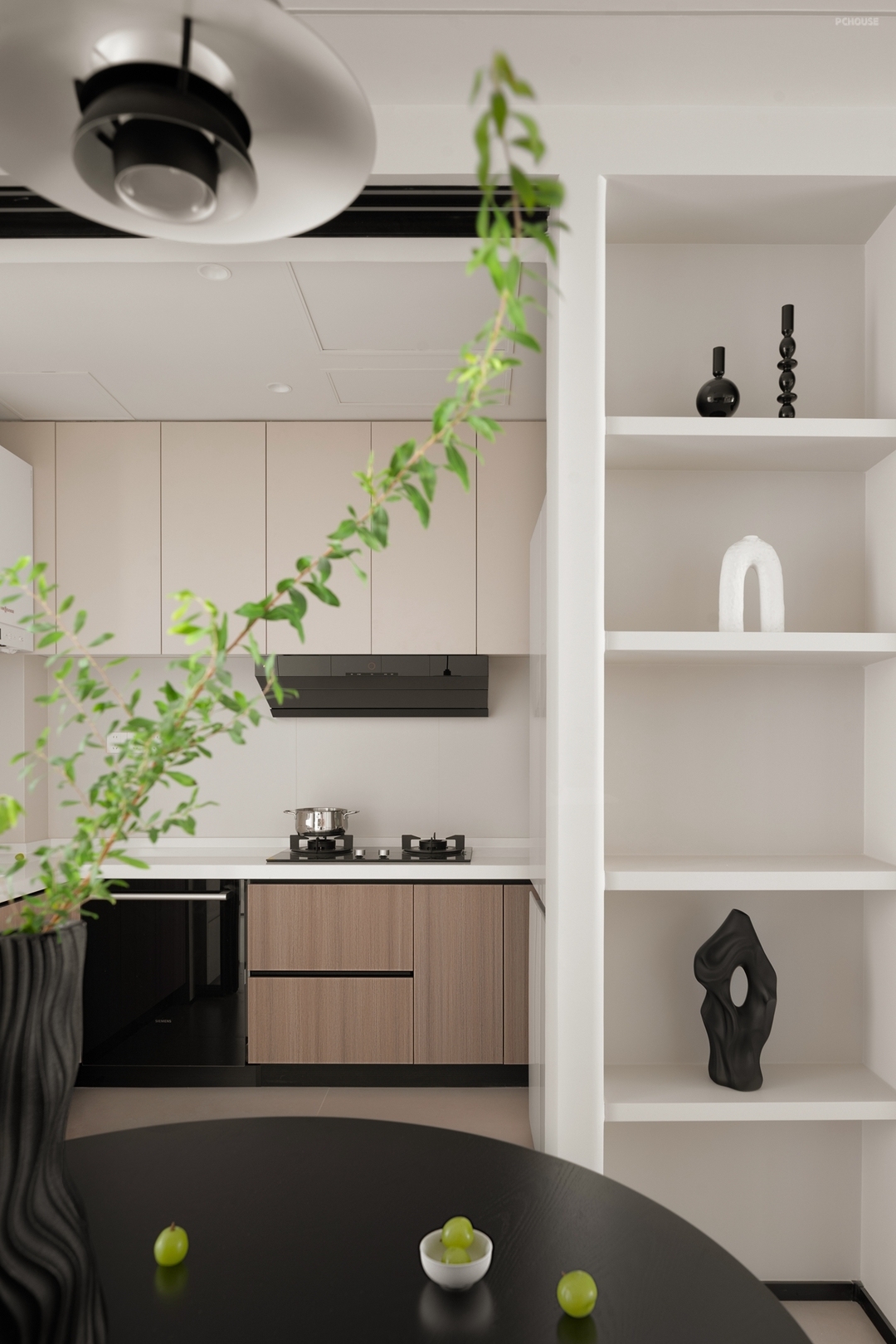 厨房采用的是开放式厨房布局,有效的在视觉上增大了厨房空间,