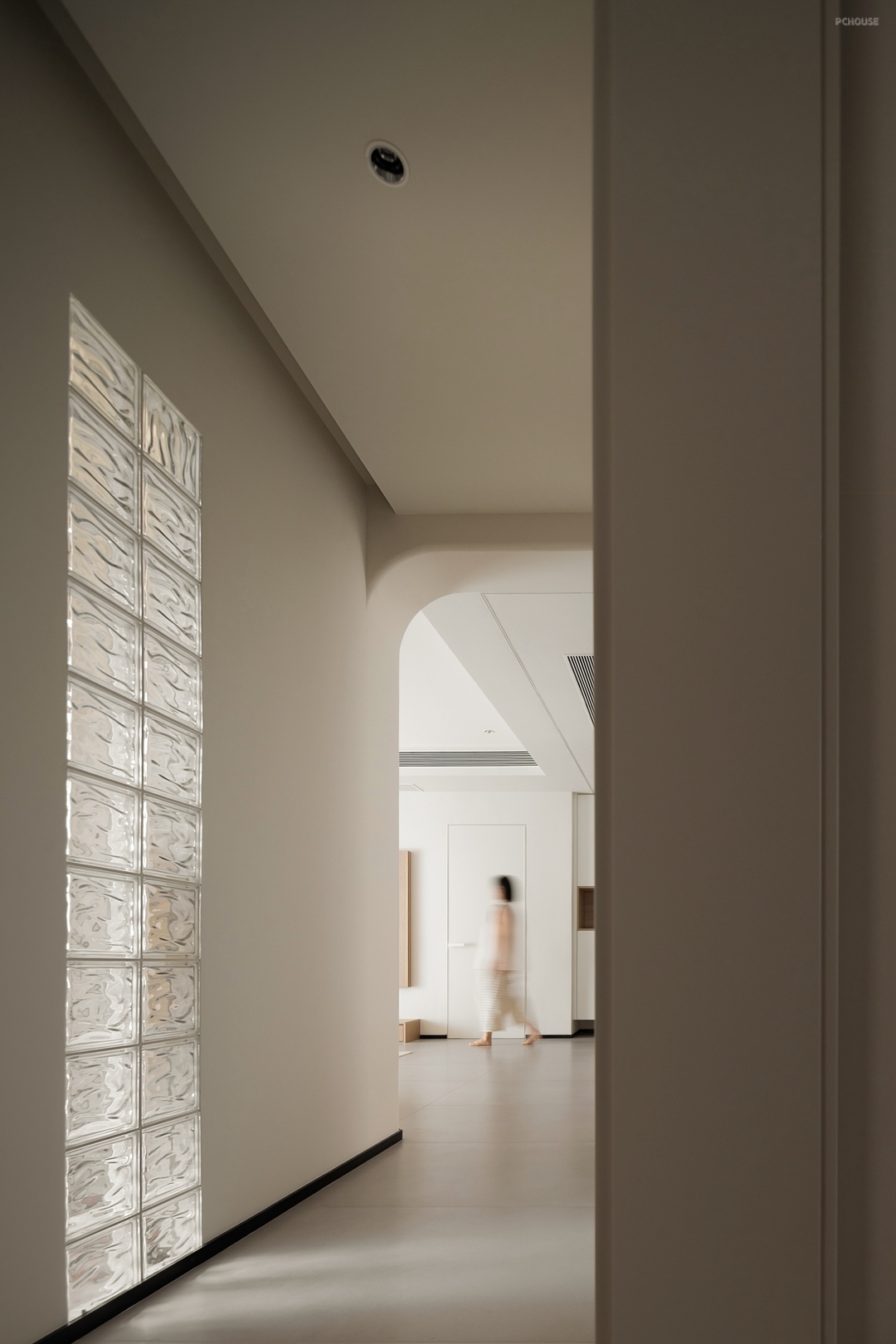 客厅采用的是无主灯的设计,防眩内嵌式筒灯照明均匀,
