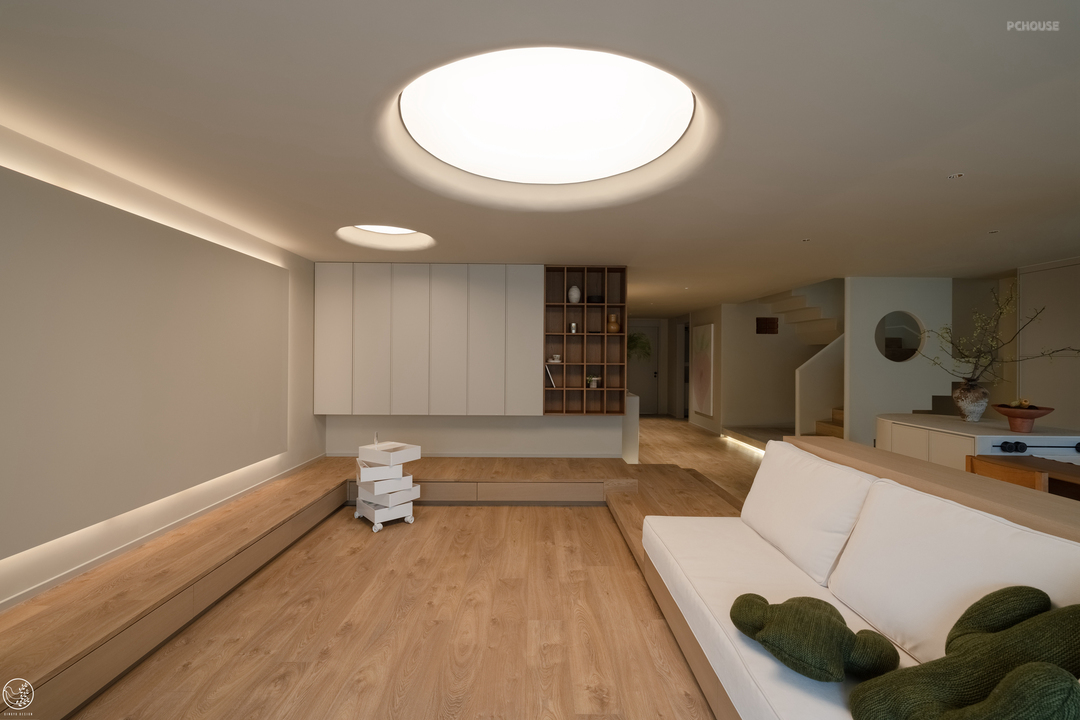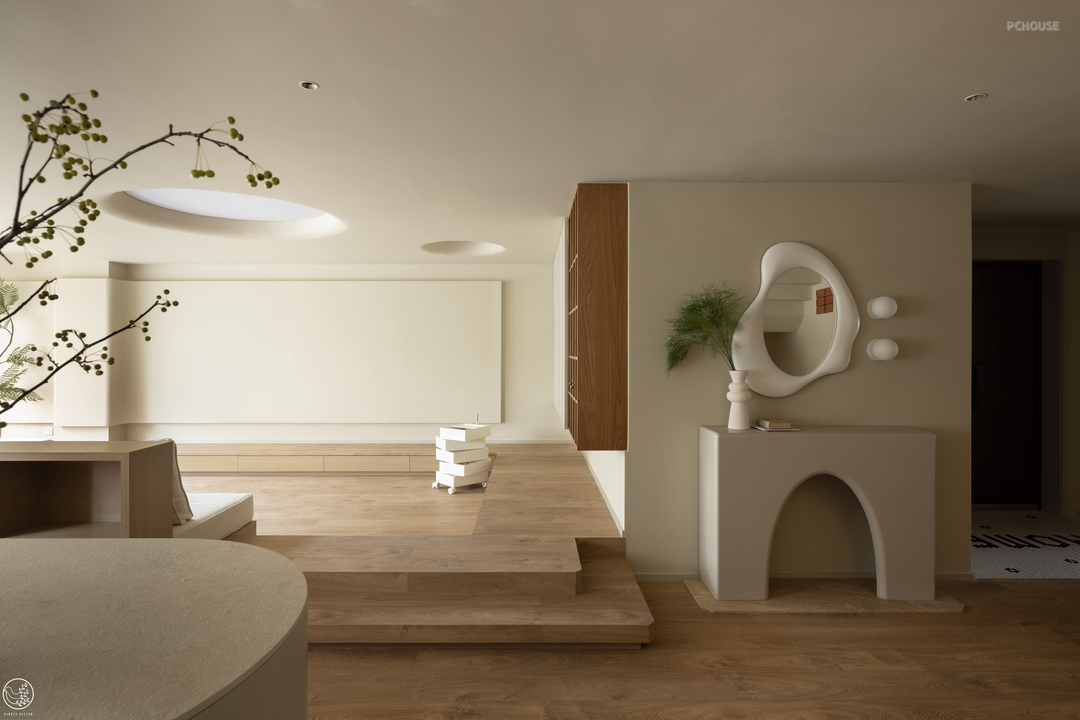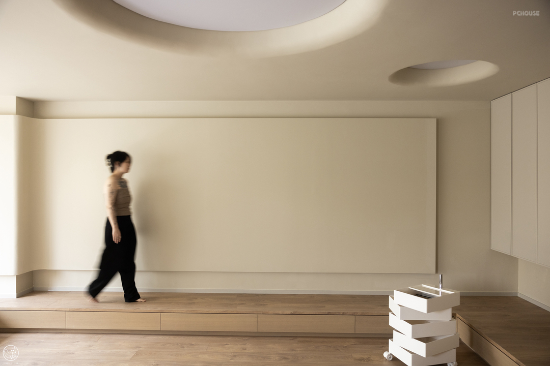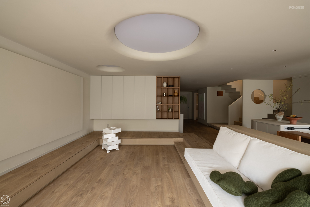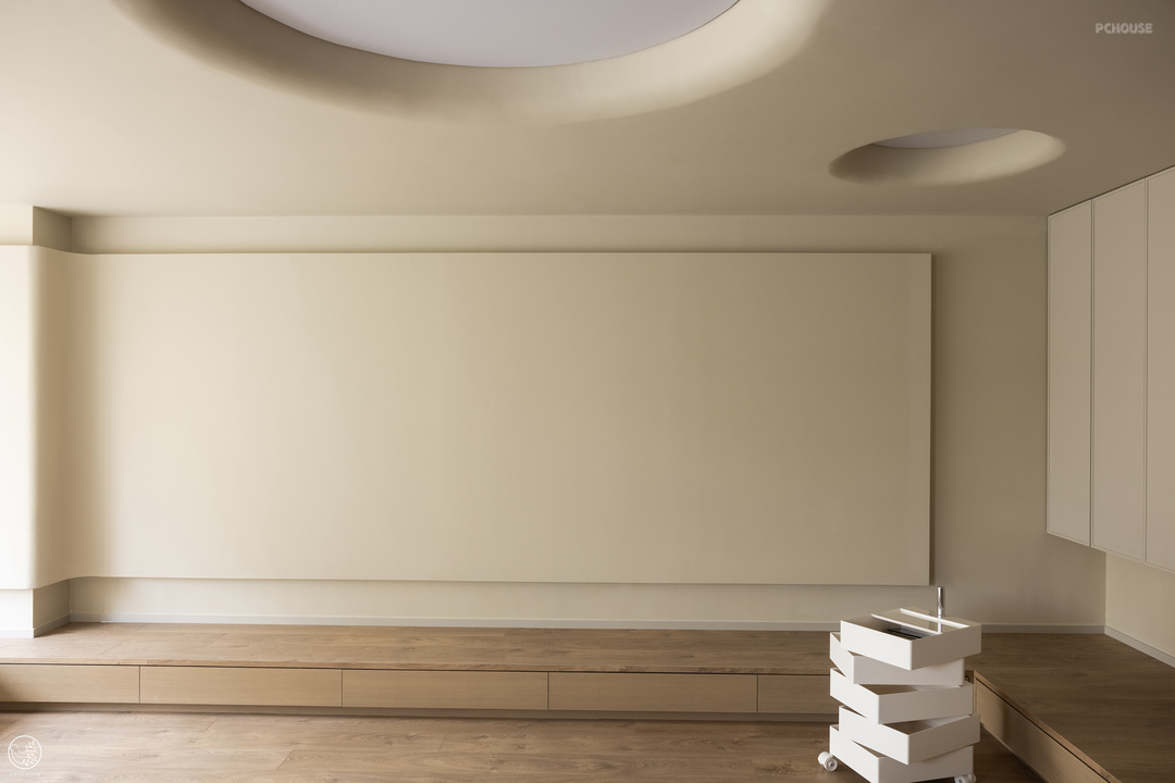 这套房屋的主人,正是是CC夫妇和8岁的D宝。这是TA们的第二居所,也是第二次跟设计师宋夏合作。让一家三口幸福感爆棚的地方很多:下沉式会客厅、主卧浴室、儿童房,悬浮楼梯、悬浮投影墙……无数的细节,都有意思。