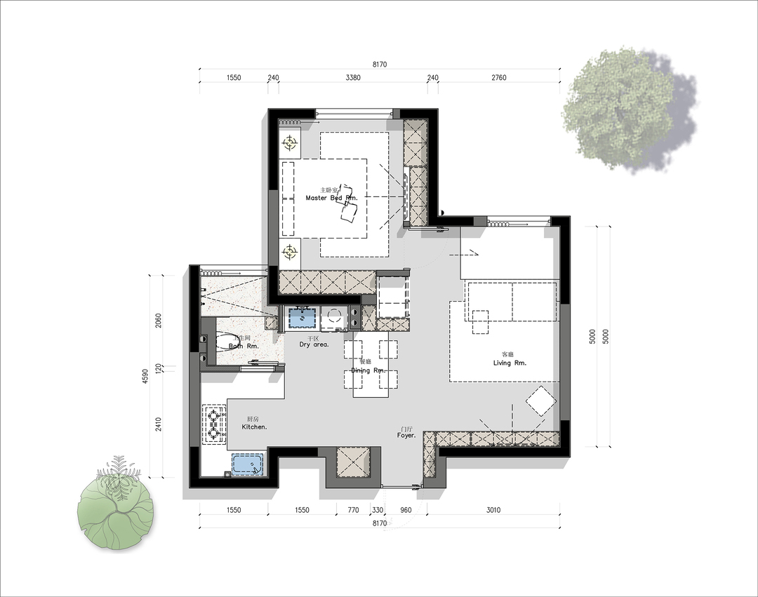 6. 玄关、客厅、餐厨、卧室等多处打造收纳系统,满足日常生活需求,提升空间使用率。