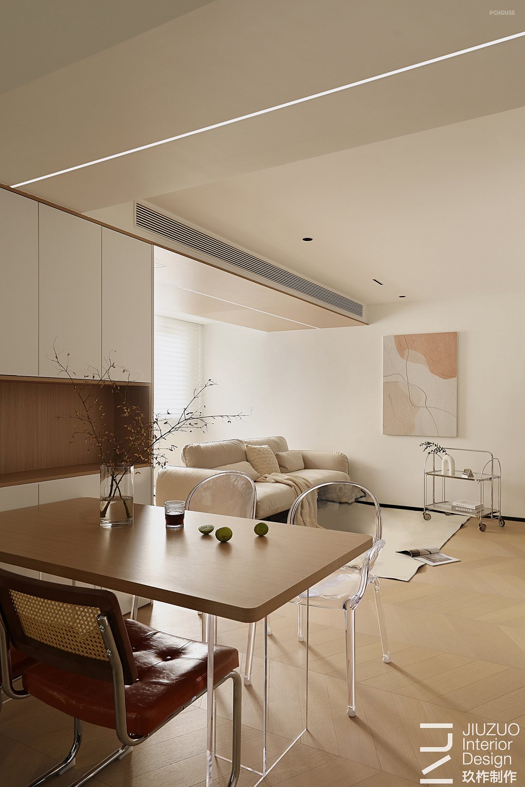 简白空间的纯粹质地和熨帖包容,是入户后感受到的的第一仪式感。