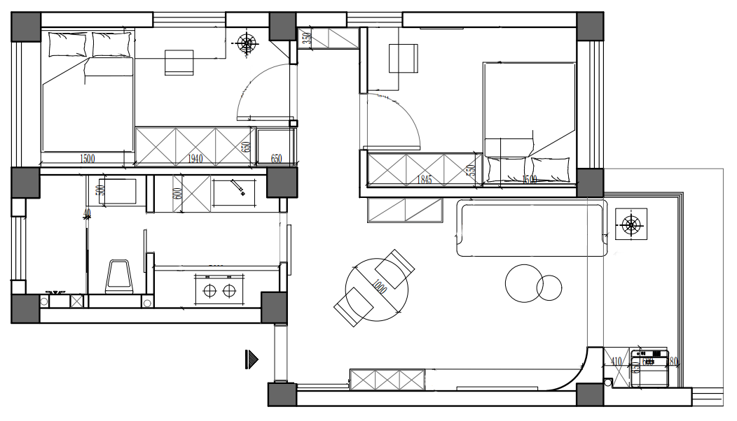 3.父母朋友偶尔过来小住,故保留两房设计。