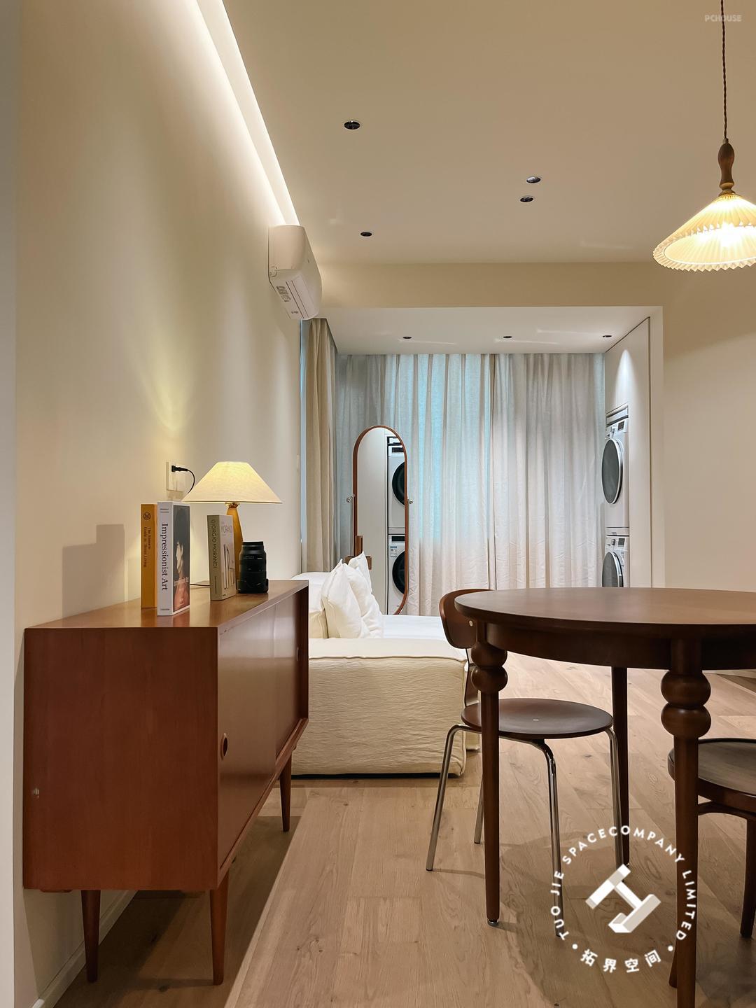 半高的柜体给餐厅留足了置物台面,可以当做小吧台,放置小型饮水机或咖啡机等。