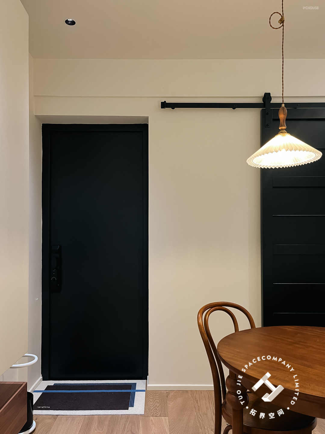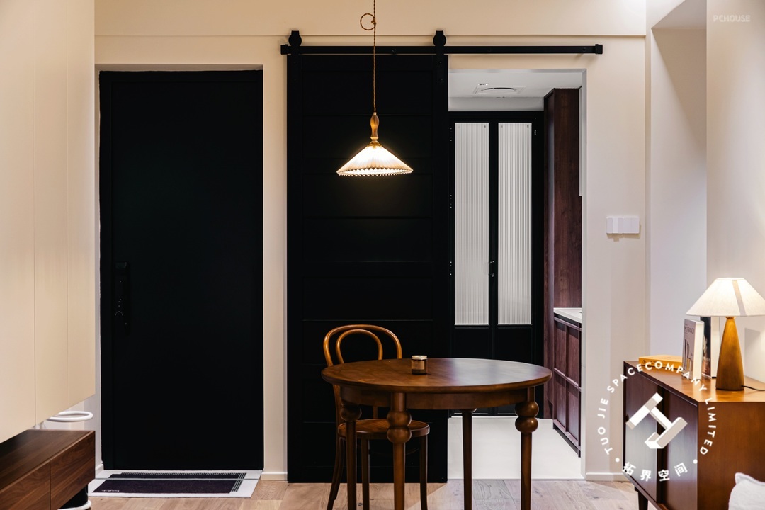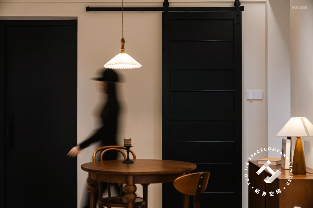 一扇炫酷的纯黑色谷仓门,加上门板上的杂志架,如同置身于一部有年代感的电影当中,让人身临其境。