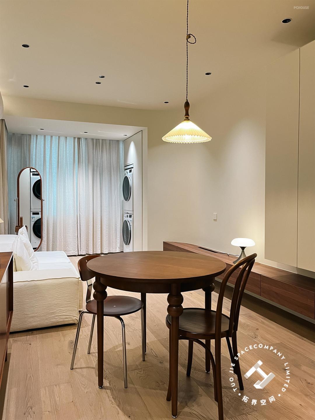一个人居住不需要多大的用餐空间,一张小小的圆桌就承包了日常的三餐,极具文艺复古感的餐桌椅,呈现出温馨有格调的空间。