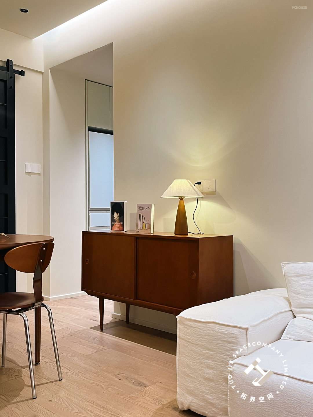业主选了这款高脚餐边柜,纤细的柜脚与方正的柜身形成对比,有分量又不显得笨重。