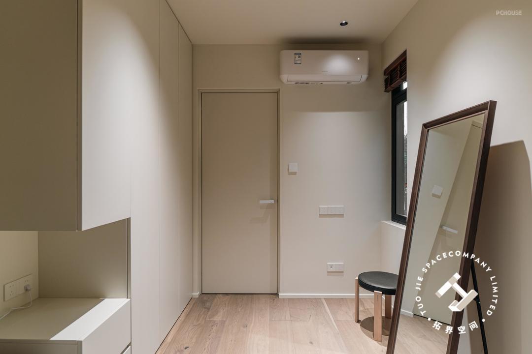 到顶大衣柜+无把手设计,给卧室保留了一份简洁和时尚感,远看如同隐形,不会显得突兀。