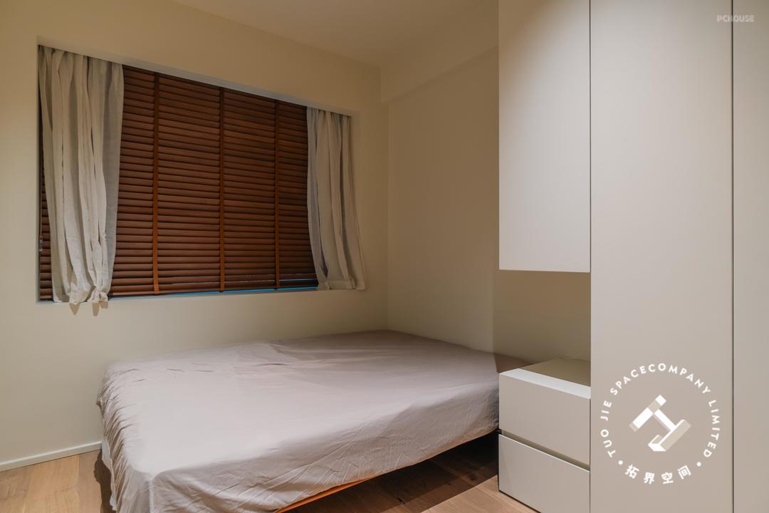 次卧拥有两面大窗户,同样使用百叶帘,可以任意调节光线,使室内呈现出不一样的光影氛围,为居室增添一份奇妙的意境。