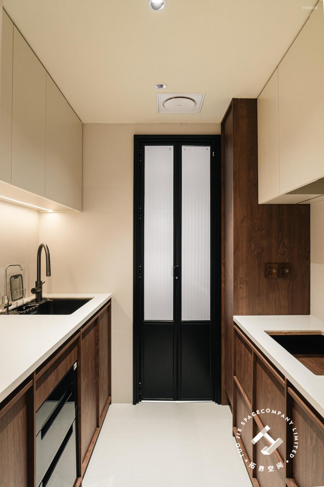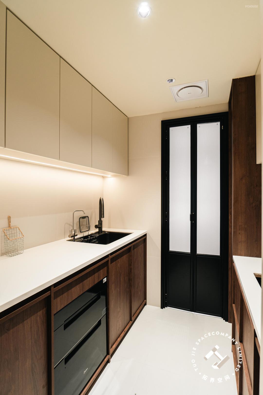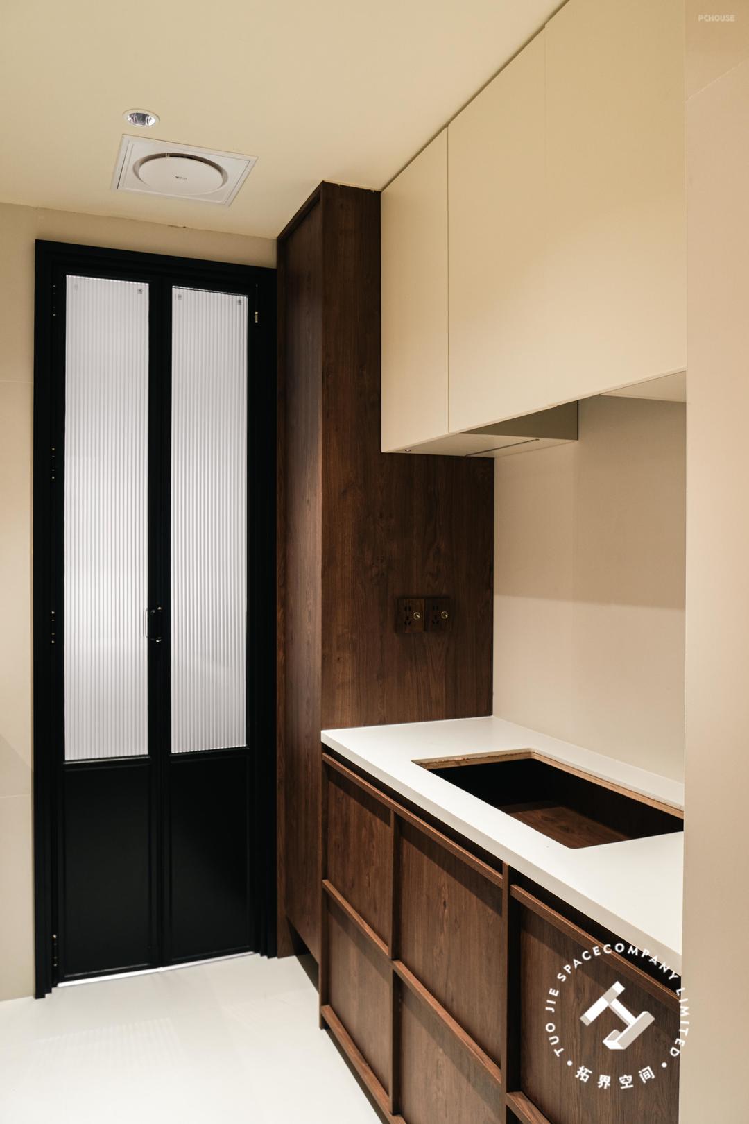 卫生间位于厨房里面,用折叠门作为隔断,极大节省厨卫空间,打开的时候会显得更加地通透大气。